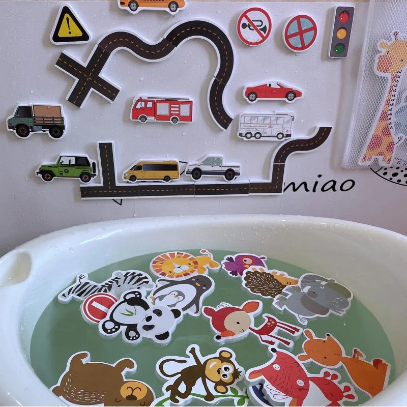 Игрушки для ванны для малышей, гибкие дорожные треки, автомобили, палочки, животные, Детская ванная, мягкая пена для ванной EVA, наклейки сделай сам, пазлы, подарки