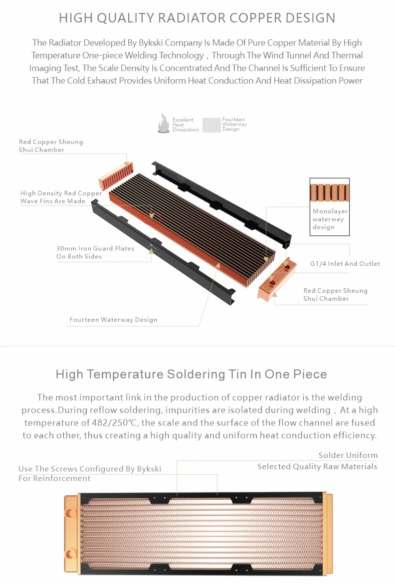 Медный радиатор серии Bykski 120 мм, высокопроизводительный радиато...