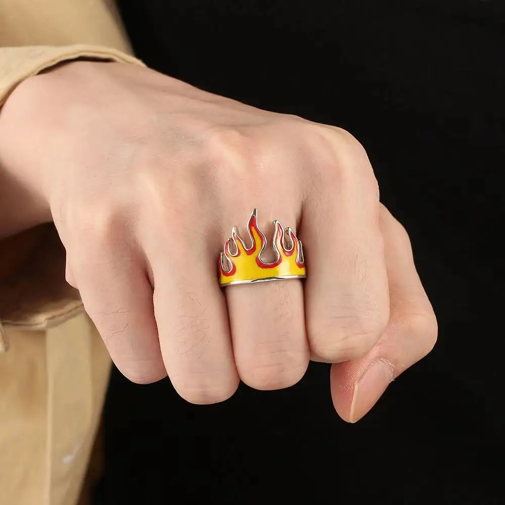 Кольцо с пламенем Goth в стиле панк для женщин, мужчин, девочек, мальчиков, модные открытые кольца с пламенем в стиле хип-хоп, ювелирные изделия для вечеринки, подарок, регулируемый размер