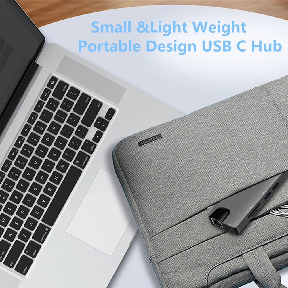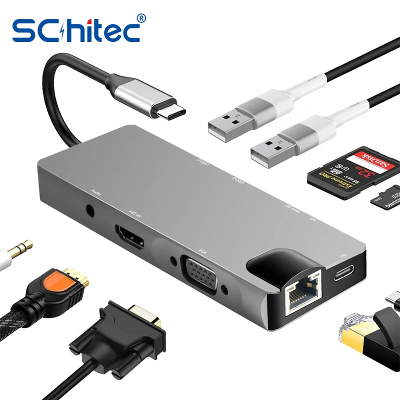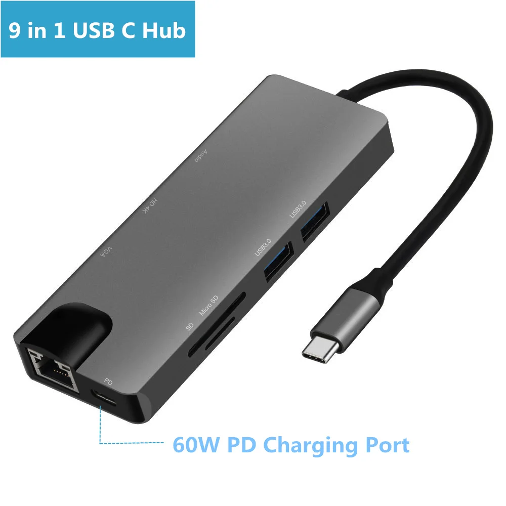 Док-станция 9 в 1, USB Type-C, HDMI, 4K, VGA, 1080P, RJ45, 100 м