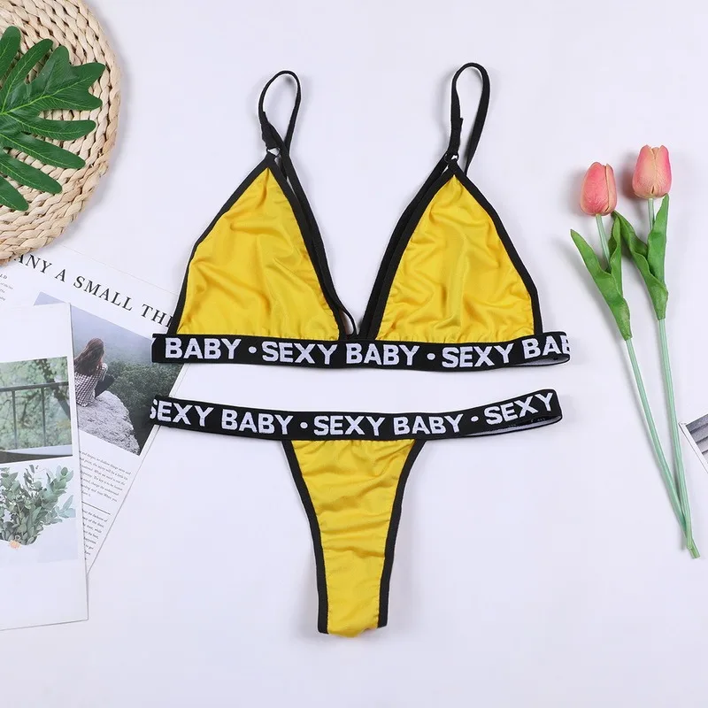 Женское однотонное пикантное нижнее белье с надписью, костюм, нижне...