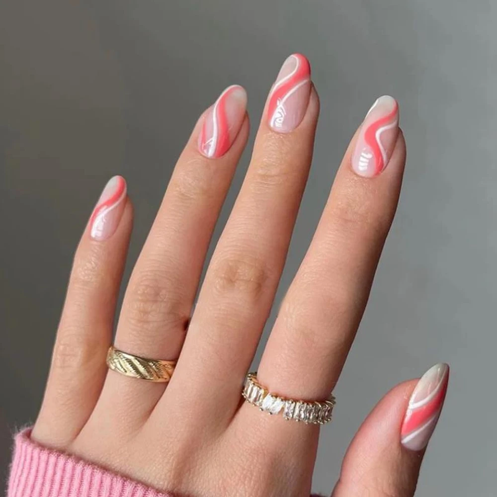 Съемные миндальные круглые волнистые накладные ногти со съемными искусственными ногтями полное покрытие накладные ногти для французских балерин
