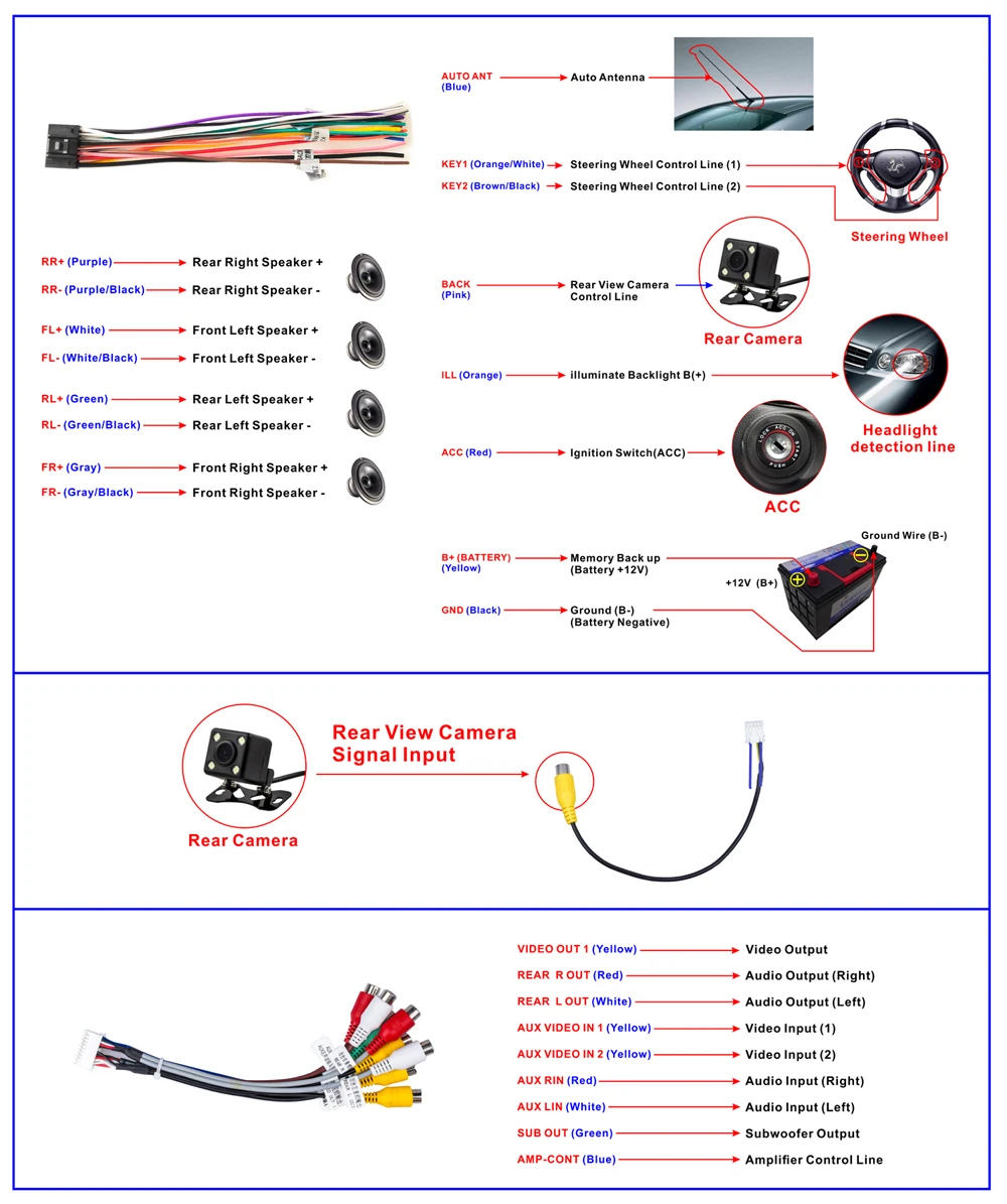 6. Этот вход Автоматически Заряжает заднюю камеру, когда транспортное средство переключается в обратную сторону и отображает изображение на экране устройства. Задняя камера продается отдельно.