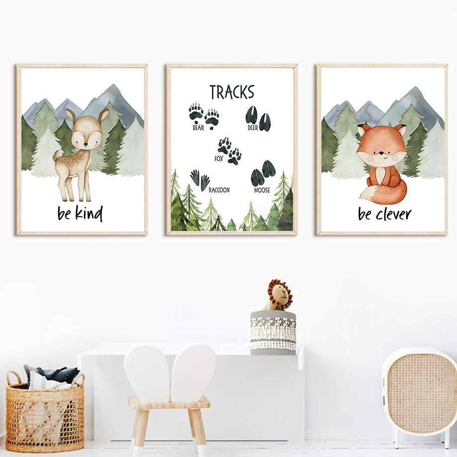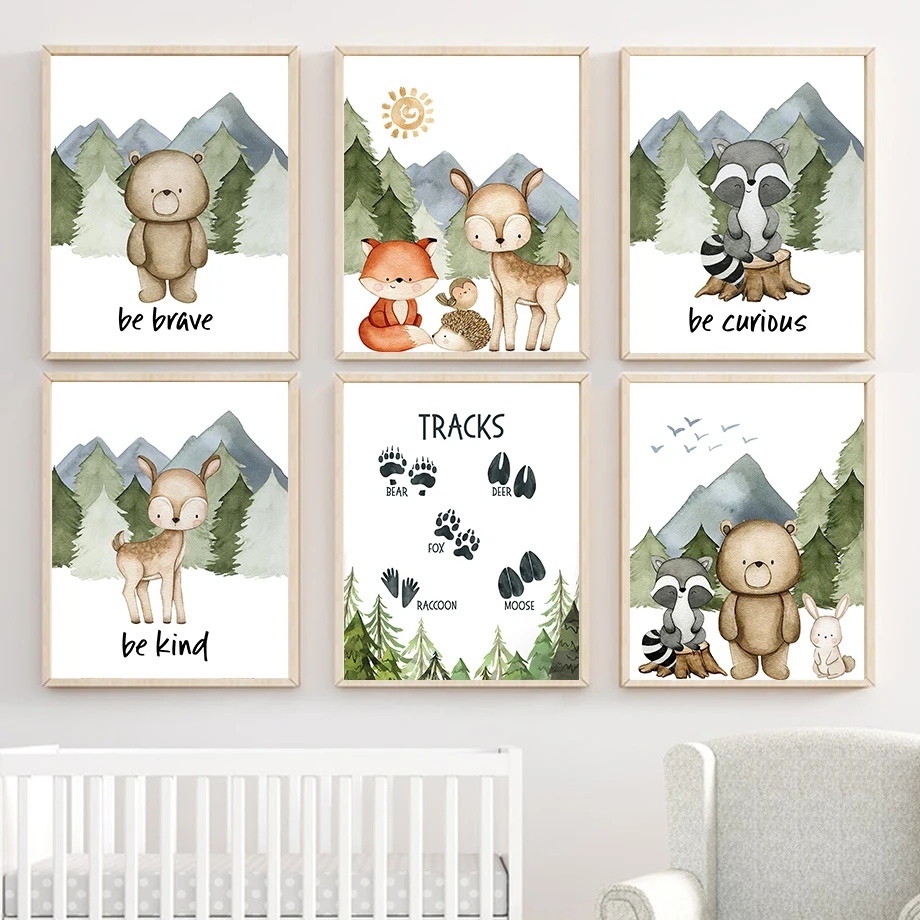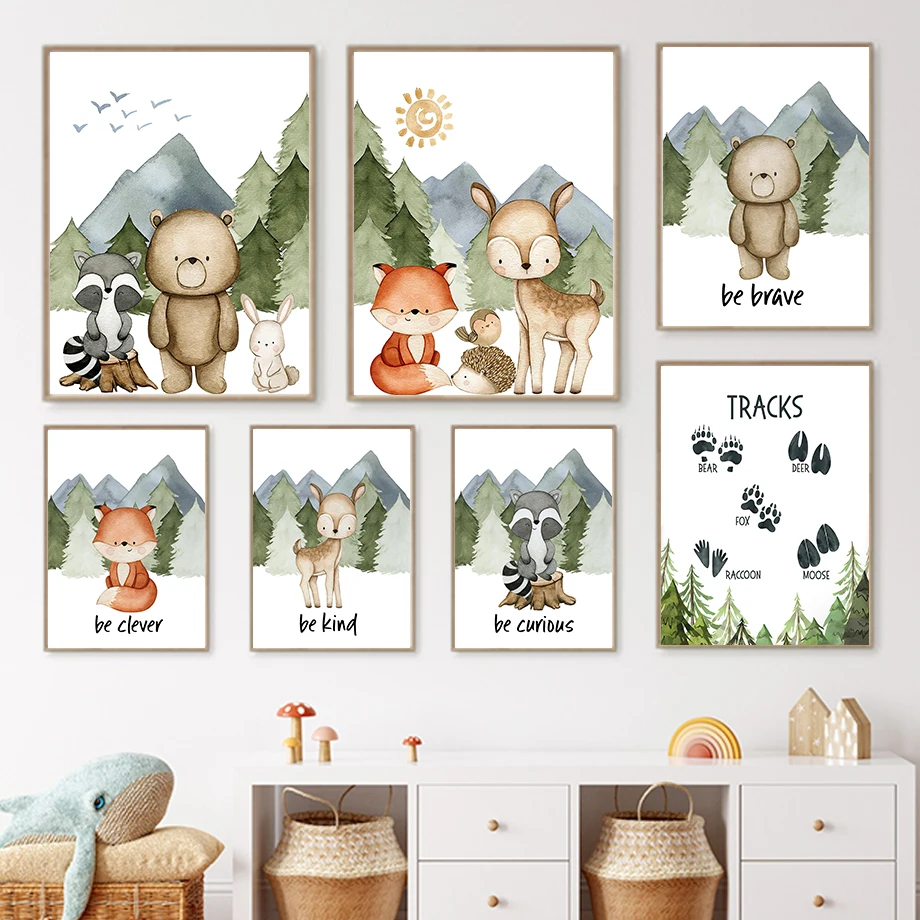 Настенная картина с изображением медведя, лисы, оленя, енота, кролика, леса, животных, постеры и принты на холсте в скандинавском стиле, настенные картины, декор для детской комнаты