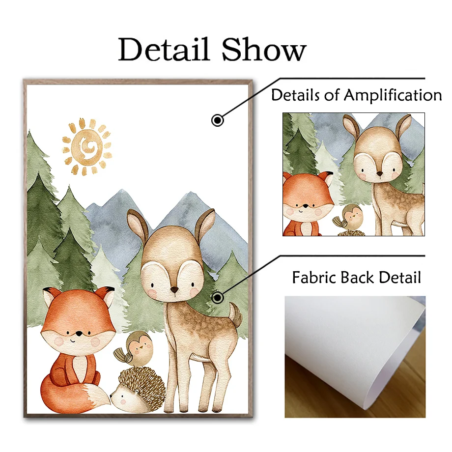 Настенная картина для детской комнаты с изображением оленя, кролика...