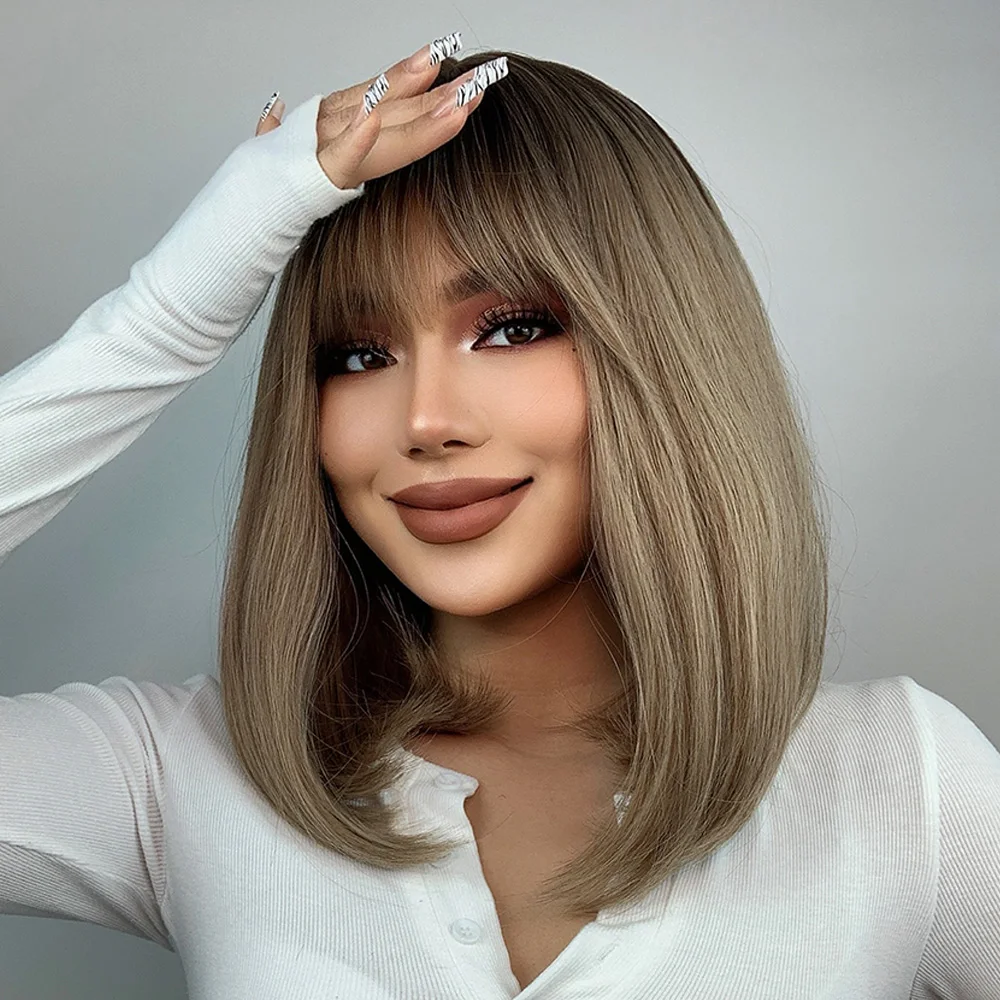 ESIN синтетические парики боб блонд парик с челкой Средние Длинные волосы для женщин Золотой коричневый градиент ежедневное использование термостойкие