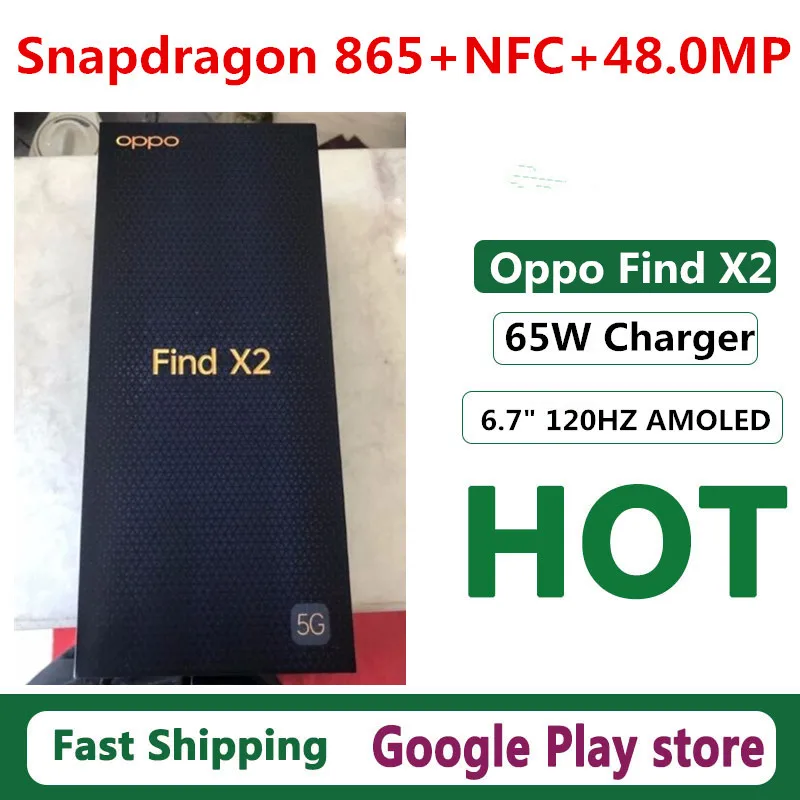 Оригинальный Oppo Find X2 5G мобильный телефон 48.0MP + 13.0MP + 12.0MP + 32.0MP 6,7 "120HZ 3168X1440 65W зарядное устройство Android 10,0 Snapdragon 865