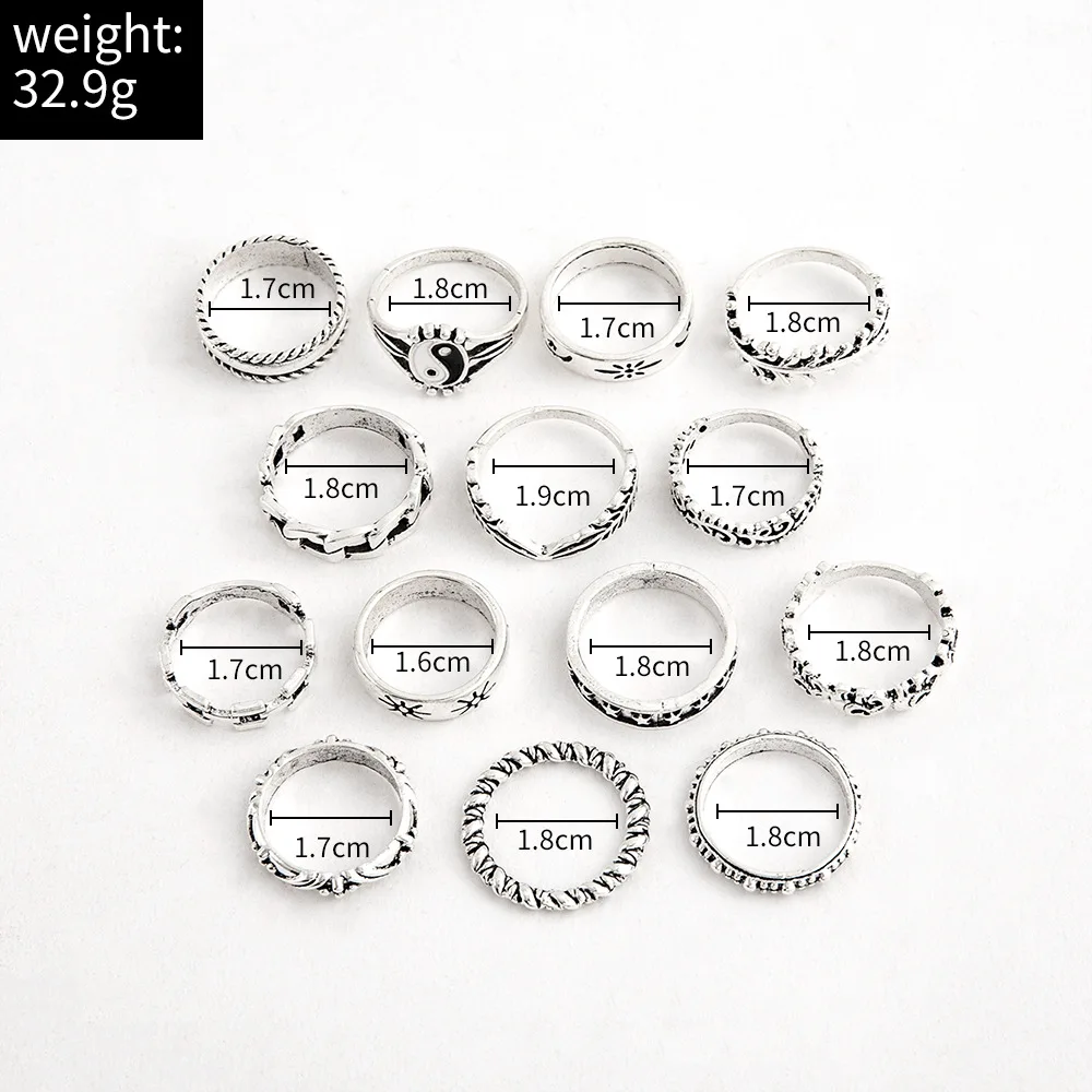 14 шт.компл. индивидуальность Ретро Инь Янь слон геометрические кольца для женщин модный готический серебряный цвет обручальные кольца набор