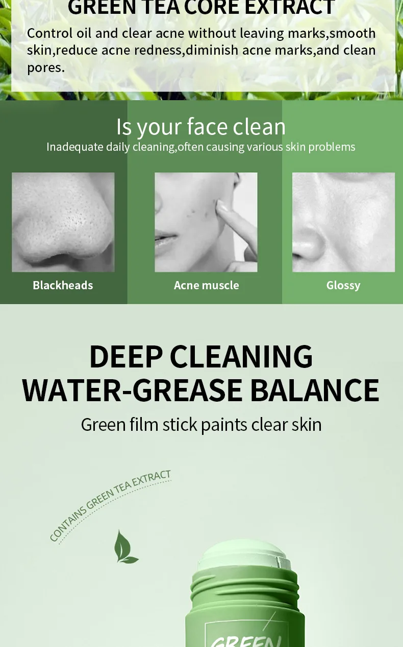 Очищающая зеленая палочка, маска для зеленого чая, маска, очищающая палочки пластилина, маска для контроля жирности, против акне, отбеливания баклажан