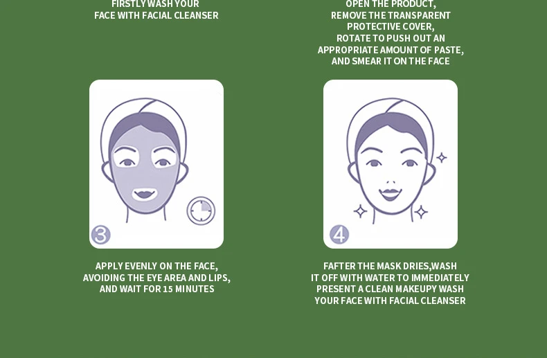 1. Однотонная Очищающая маска зеленого чая содержит экстракт зеленого чая, который может эффективно очищать поры кожи, глубоко очищать грязь, регулировать водный баланс кожи и масла, восстанавливать влагу кожи и питать кожу.