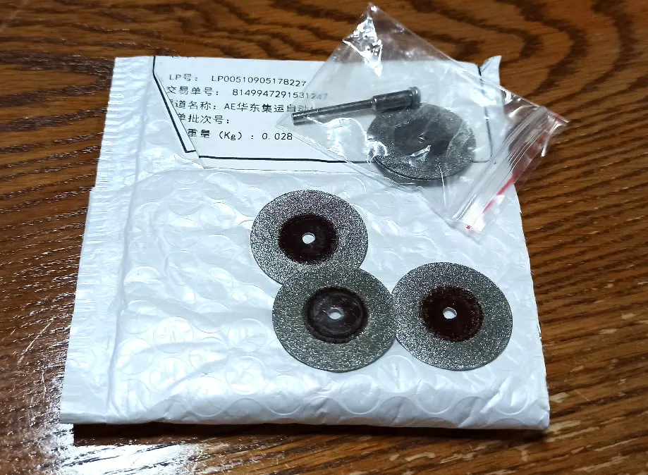 Досрочная доставка в Россию. Набор получил в общей упаковке с другими мелкими заказами. Диаметр держателя - 3 мм. Пробовал на металле (мелкие винты) - режет. Спасибо продавцу.