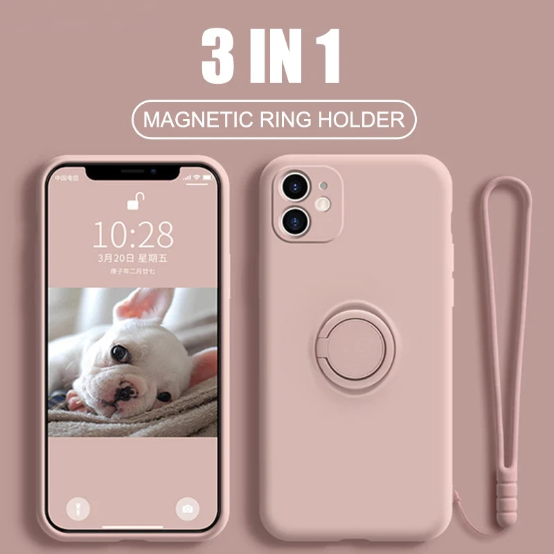 Магнитный чехол из жидкого силикона с кольцом-держателем для IPhone...