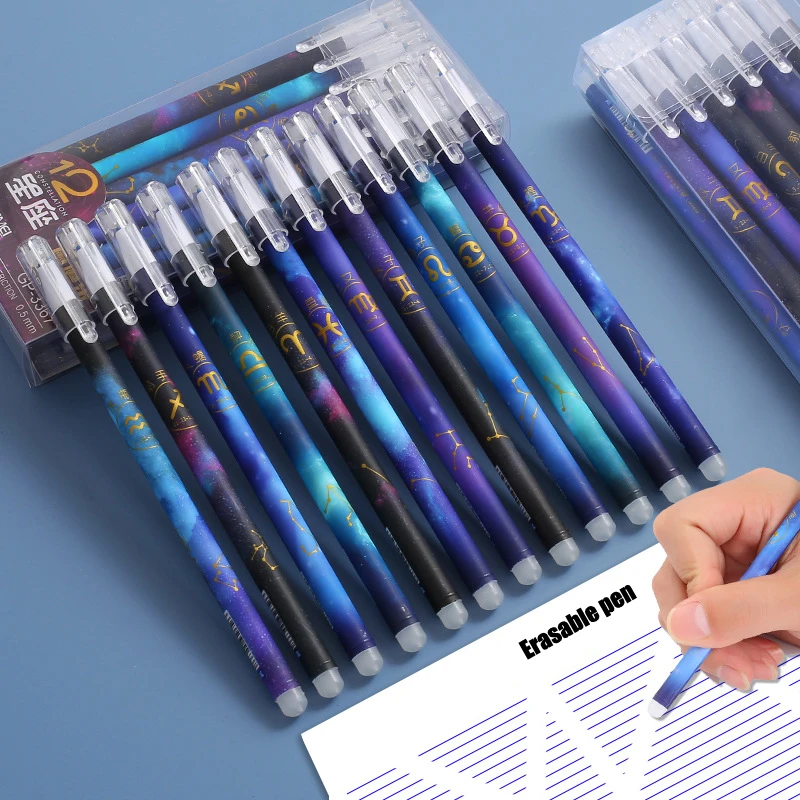 -Название: набор стираемых гелевых ручек-Диаметр пишушей головки: 0,5 мм-Размер ручки: стираемая ручка 14,7 см-Количество: 12 шт. Созвездие стираемая ручка-Цвет чернил: синий/черный на выбор-Материал: пластик-Прямая доставка: Поддержка-Гладкое письмо, без сухих пятен-100% новый и высокое качество-Примечание покупателя: из-за стираемости, он не может быть использован для подписи ценных бумаг и важных документов.