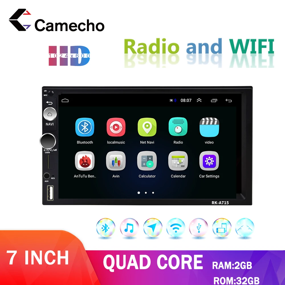 Автомагнитола Camecho универсальная 2 Din, мультимедийный проигрыватель с 7-дюймовым сенсорным HD экраном для камеры заднего вида VW, Nissan, Kia