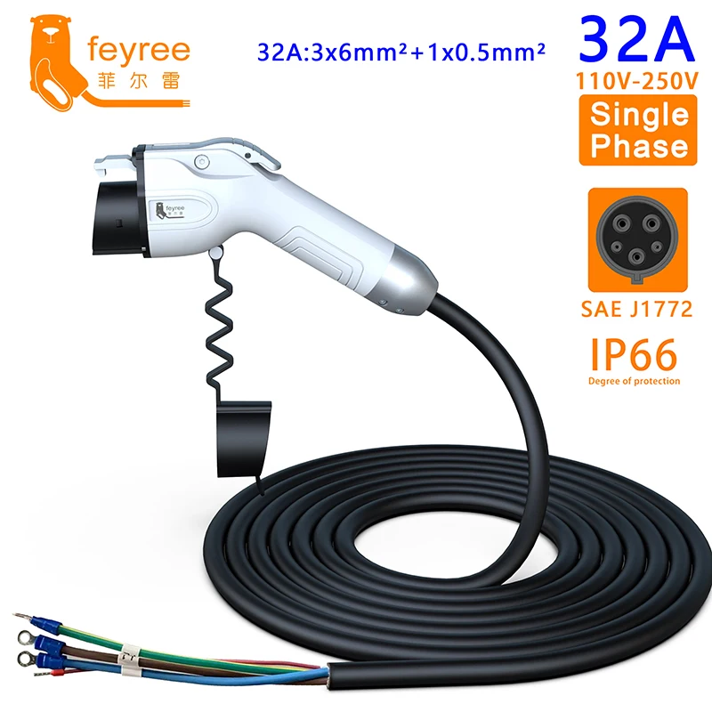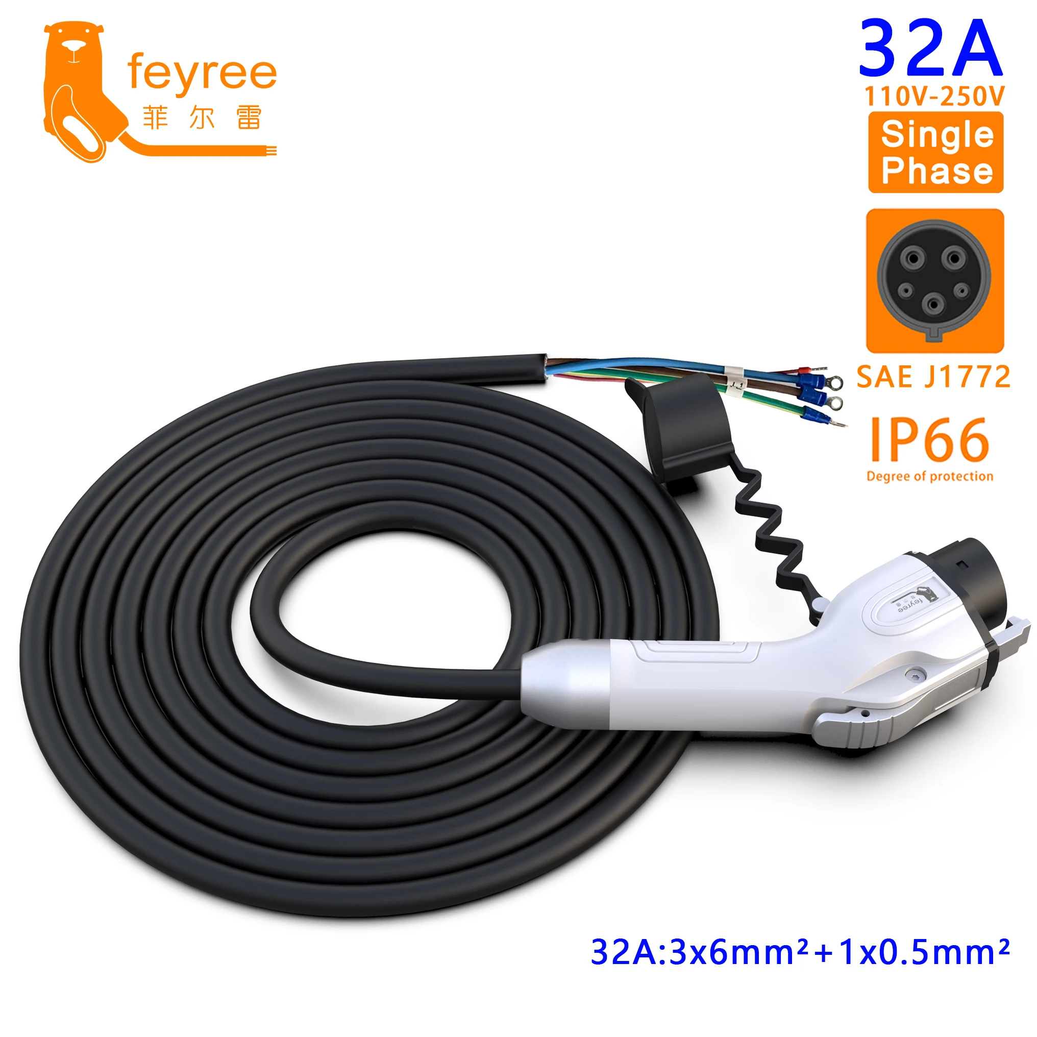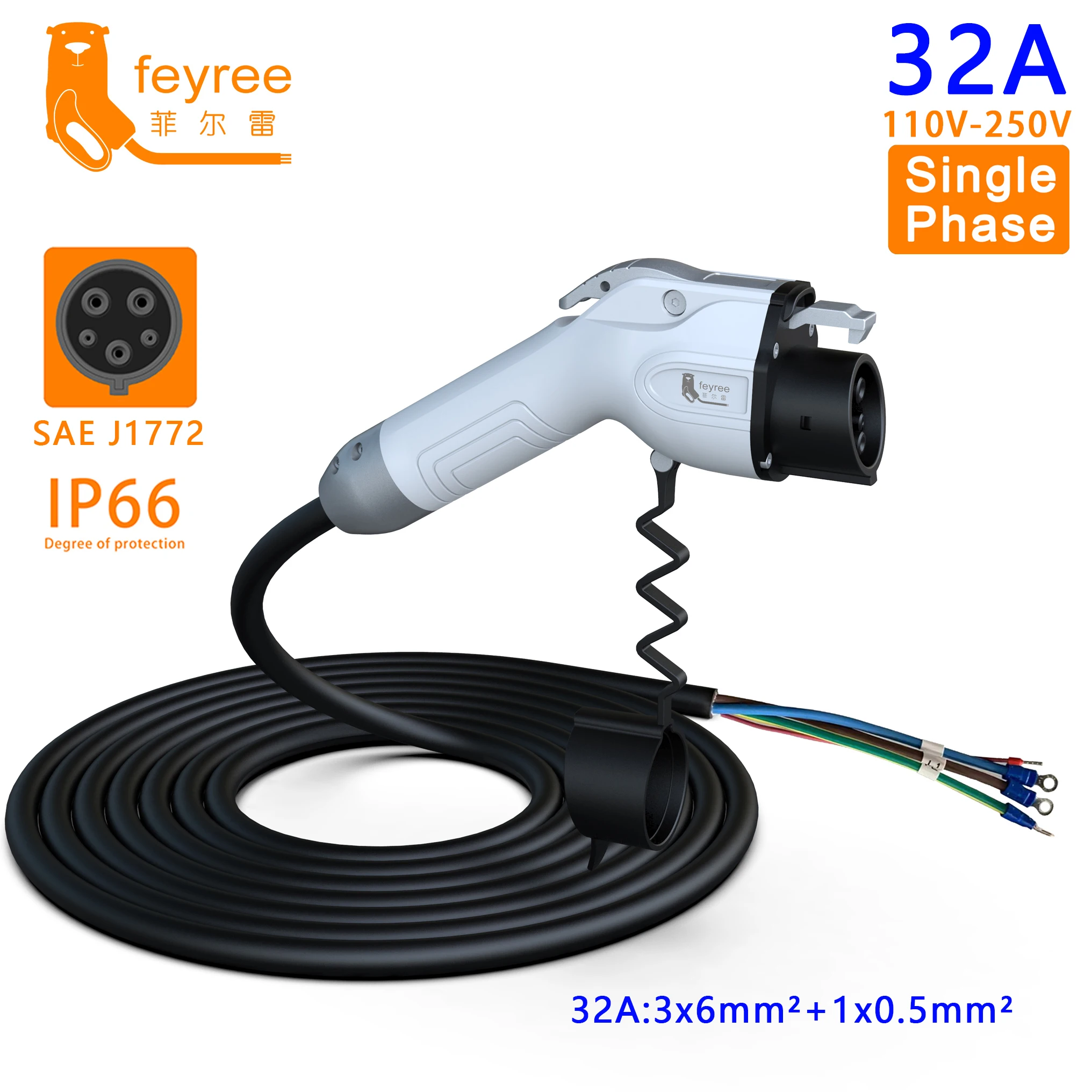 Feyree SAEJ1772 адаптер тип 1 разъем EV зарядный кабель 5 м Шнур 32A 16A для автомобильной зарядной станции электромобиля