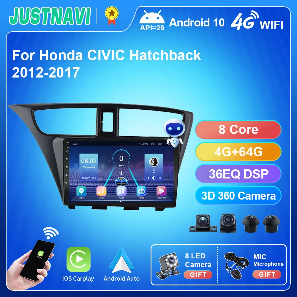 JUSTNAVI QT5 360 Android 9,0 автомобильный радиоплеер GPS WIFI стерео для Honda CIVIC Hatchback 2012 - 2016 2017 Автомобильное видео OBD без DVD