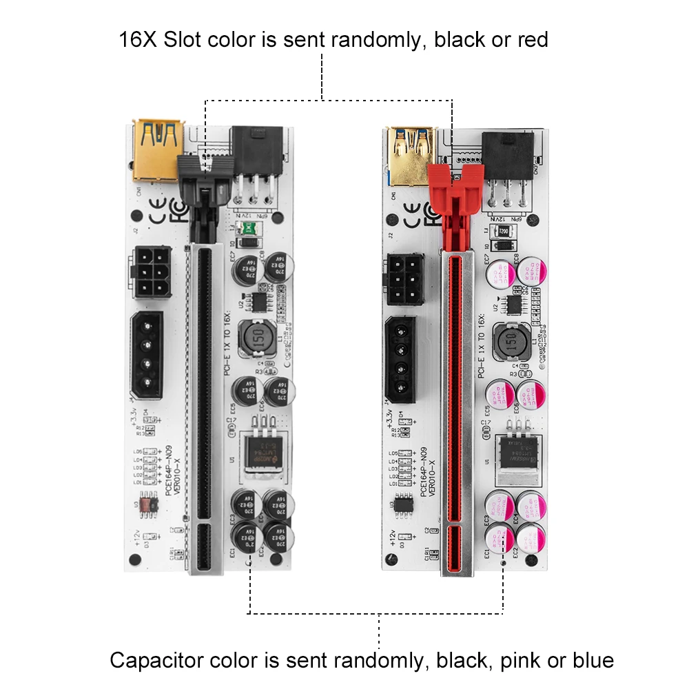 Наборы переходников версии 010X-это новейшее и верхнее линейное решение для настройки горных установок GPU. 4PIN и две графические карты 6PIN интерфейс являются необязательными для питания, что обеспечивает независимое питание графической карты и уменьшает нагрузку на материнскую плату при использовании большего количества графических карт. Светодиодный дисплей, 8 твердых конденсаторов, 60 см USB 3,0 кабель, подходит для всех оконных систем, LINUX и MAC.