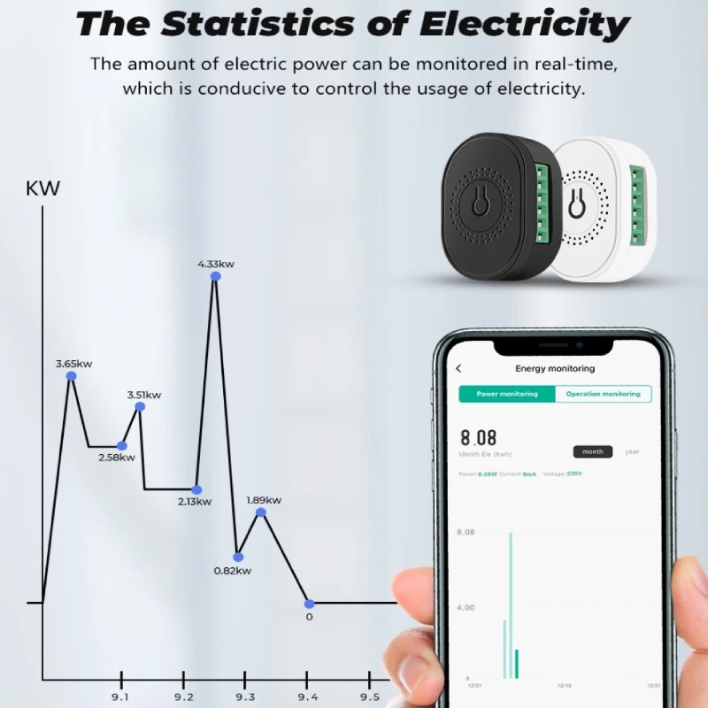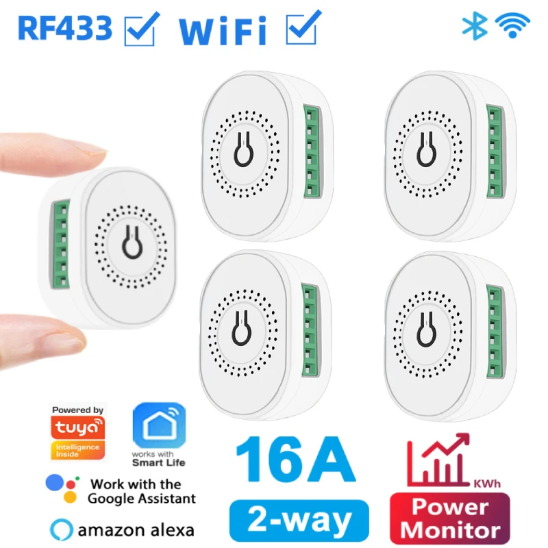 Мини-переключатель Tuya 16A Wifi Smart Switch Двустороннее управление для Smartlife APP Power Monitor Работа с Alexa Google Home Support RF433