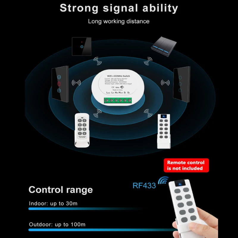 Он может управляться с помощью приложения tuya/smart life, голосового динамика и может управляться беспроводным переключателем (433 МГц) и переключателем управления, что более удобно