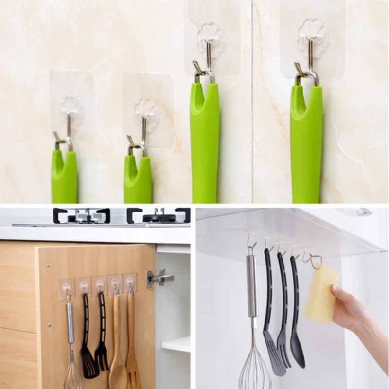 10 шт. прозрачные крепкие самоклеющиеся вешалки для дверей, полотенца, Швабра, держатель для сумочки, крючки для подвешивания, кухонные аксессуары для ванной комнатыОсобенности: