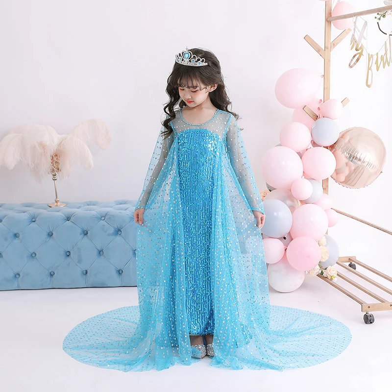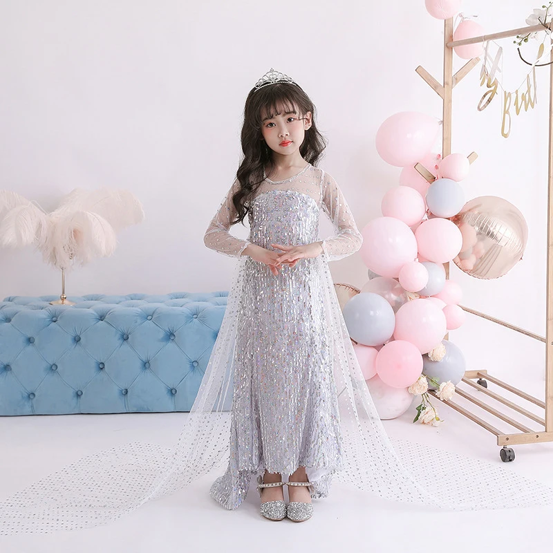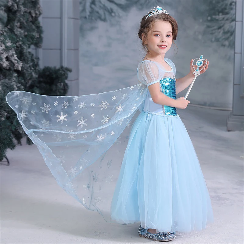 Одежда с блестками, платье принцессы, Детские платья для девочек вечерние, аксессуары для волос, костюм, детское платье для косплея