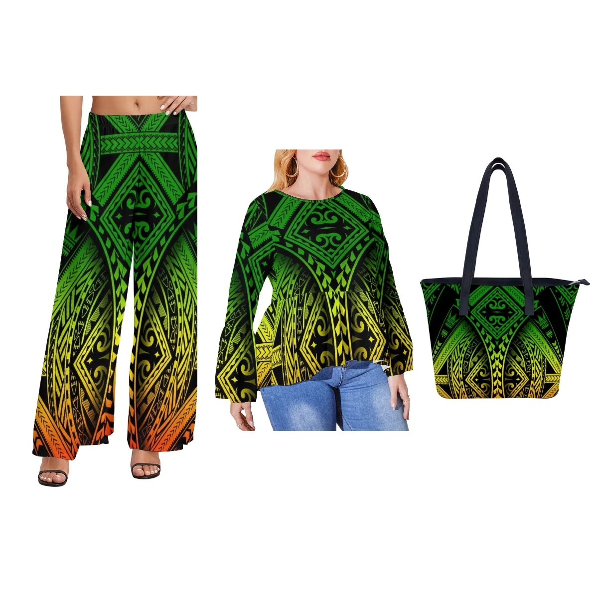 6XL классические полинезийские Гавайские Топы высшего качества синие Летние повседневные футболки с длинным рукавом для женщин шифоновые топы наборы Бесплатная доставка