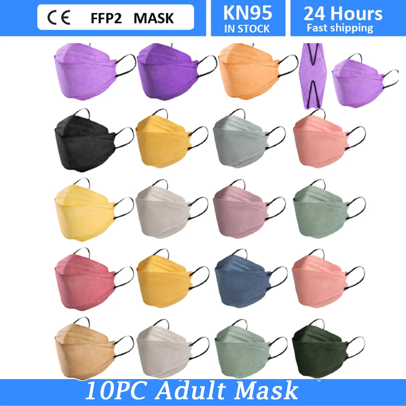 Маска для лица s KN95 19 цветов Маска для взрослых mascarillas FFP2 CE маска рыбьего типа 3d 4-слойная ffp2mask 10 шт. mascherine ffp2 однотонные маски