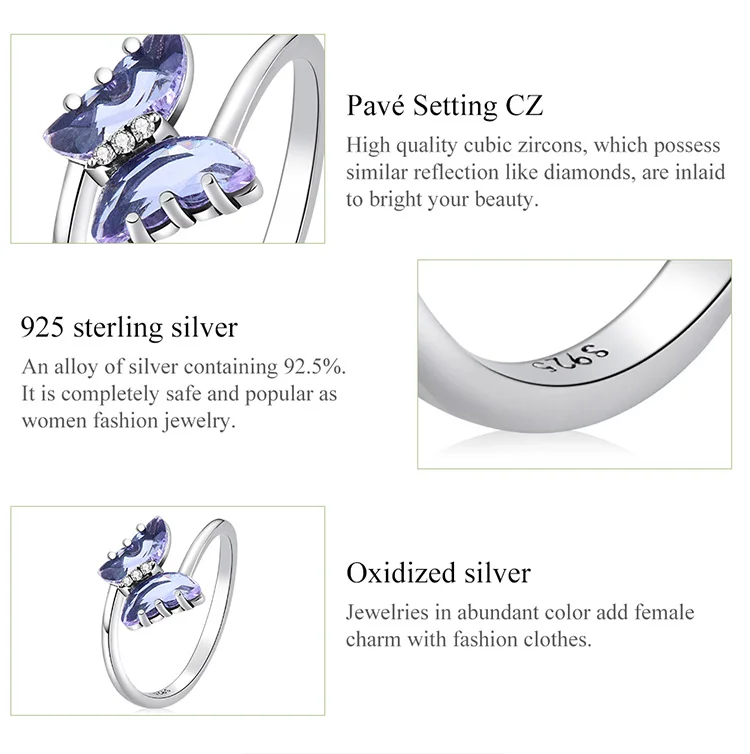 ❤[Описание] окисленное Серебряное Кольцо украшено красивой фиолетовой бабочкой. Крылья бабочки изготовлены из стекла, который является красивым и ярким. Тело инкрустировано сияющим цирконом, изысканным и модным, добавляя ощущение моды повседневной одежде.❤[Спецификация] Ширина: 0,2 см, размер бабочки: 0,8*1,0 см.❤[Материал] Стерлинговое Серебро 925 пробы, прозрачное стекло и ПАВЕ, окисленное серебро с фианитами, твердое Стерлинговое Серебро с 925 штампом, стиль не содержит никель, свинец, кадмий, гипоаллергенный. Гарантия качества, приятный для кожи, удобный и удобный в носке, не вредный для вашего здоровья.❤[Для подарка] это уникальное кольцо оригинального дизайна красиво упаковано и готово для подарка. Купите сюрприз сейчас.