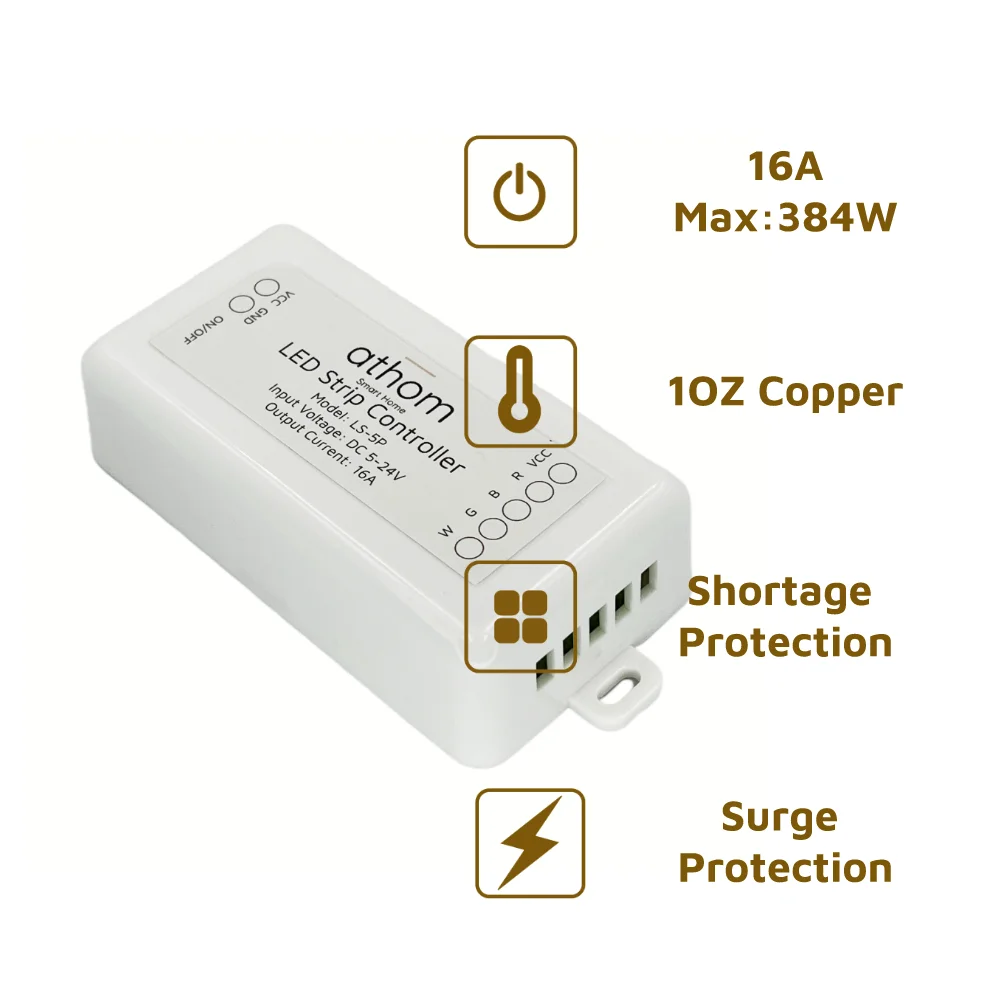 Контроллер светодиодной ленты высокой мощности ATHOM Tasmota RGBW, 5-24 В, 16 А