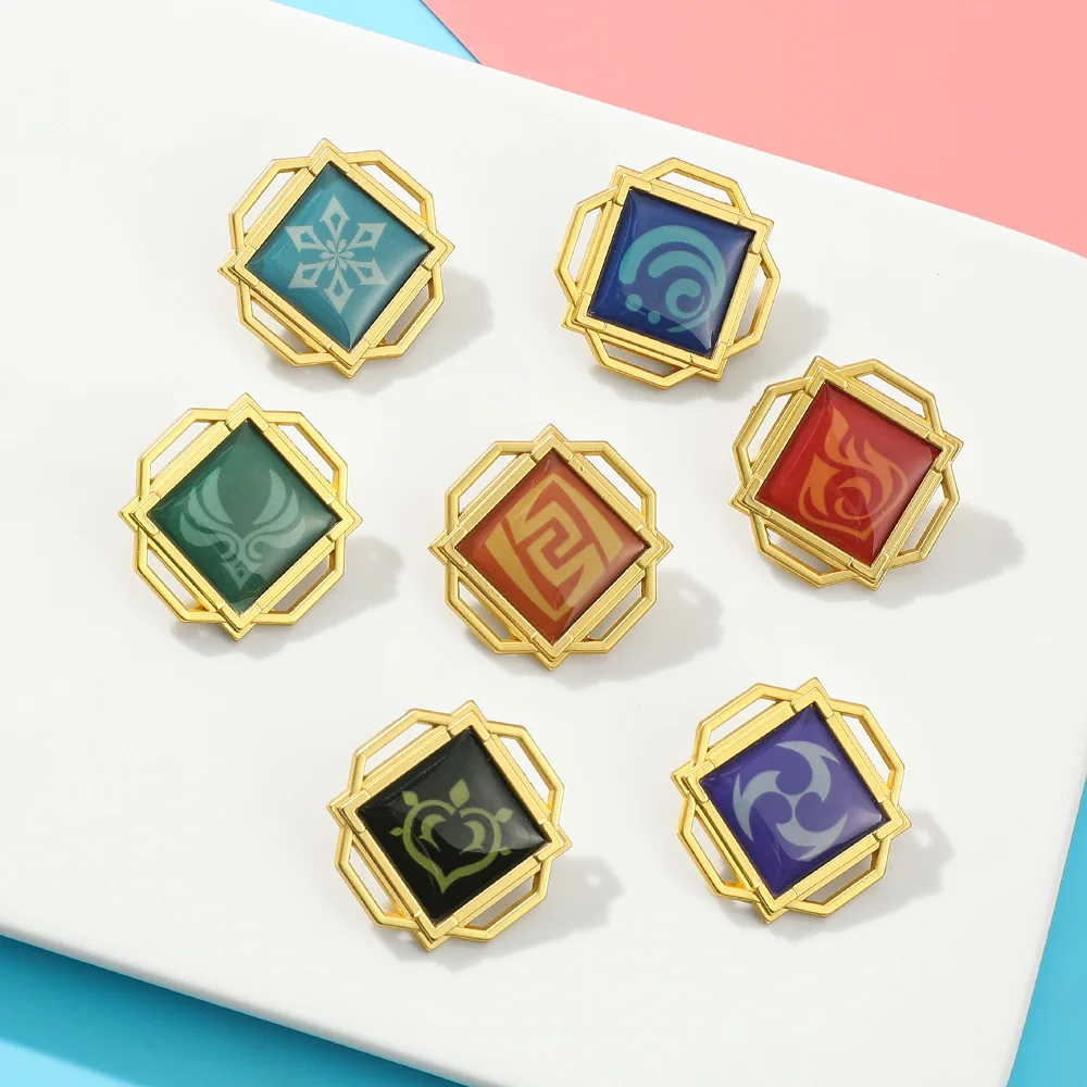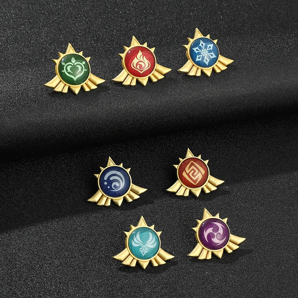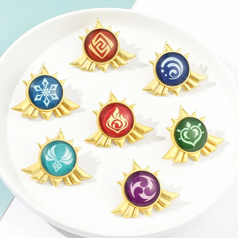 Брошь аниме Genshin Impact, светящиеся значки семь элементов Vision...