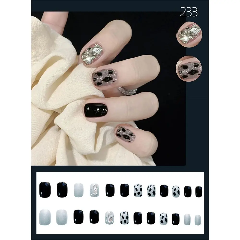 24 шт., красные блестящие накладные ногти с леопардовым узором, полное покрытие, накладные ногти с короткой головкой, сделай сам, приклеивающиеся ногти, искусственные ногти балерины