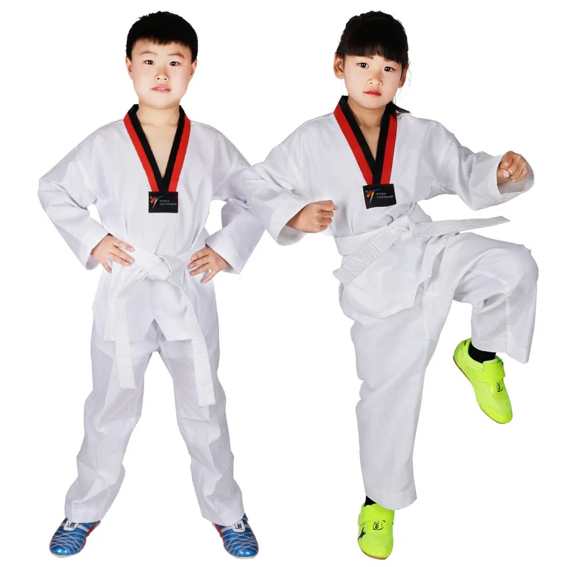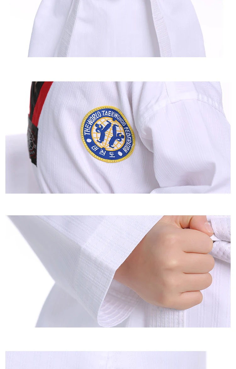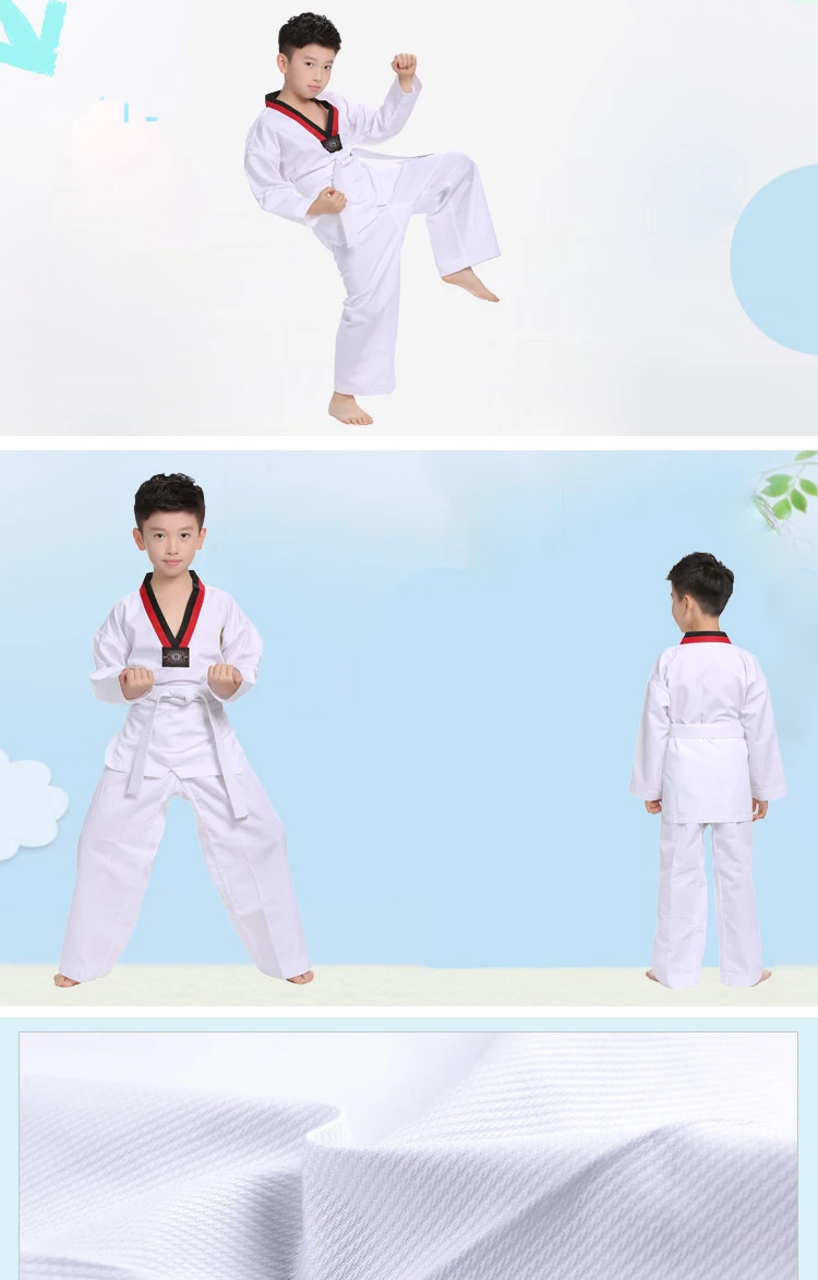 2022 TKD Костюмы Одежда Белые униформы для тхэквондо WTF Karate Judo Dobok одежда для детей и взрослых унисекс Униформа с длинным рукавом Gi