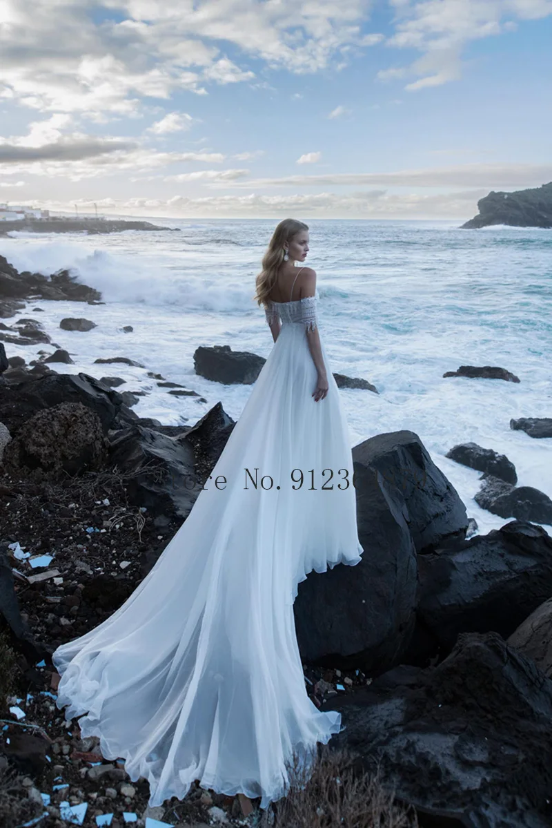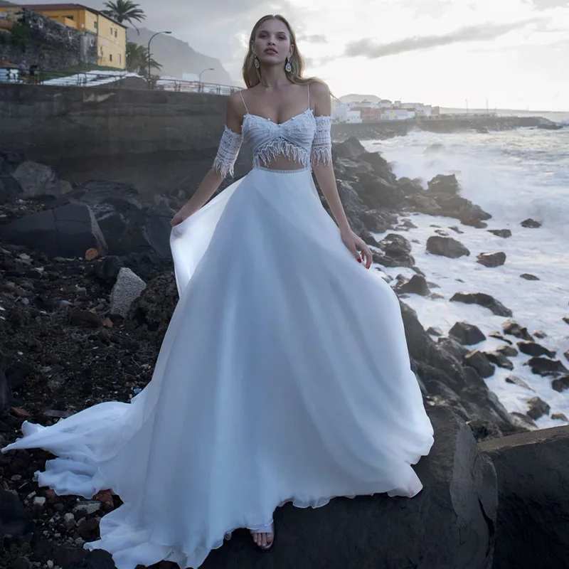 Свадебное платье в стиле бохо на тонких бретельках, ТРАПЕЦИЕВИДНОЕ кружевное пляжное платье принцессы для невесты из двух частей, свадебное платье, новинка 2022