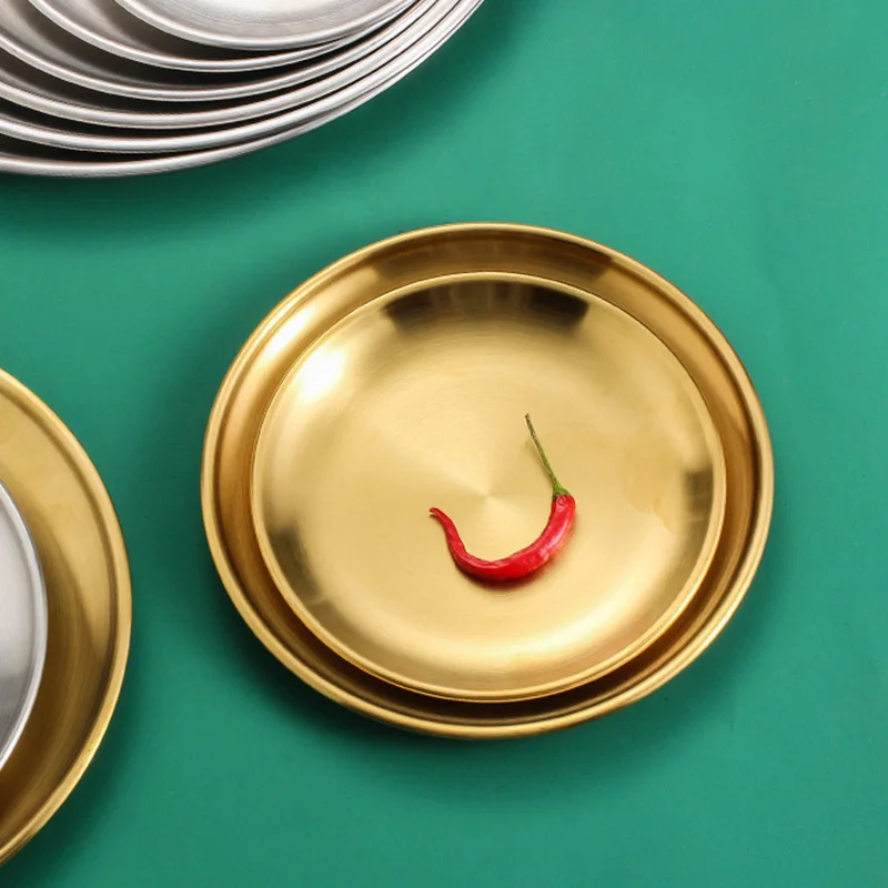 Корейский утолщенный диск из нержавеющей стали золотого и серебряного цвета, поднос для кафе, столовая посуда из искусственной кожи, кухонная посуда