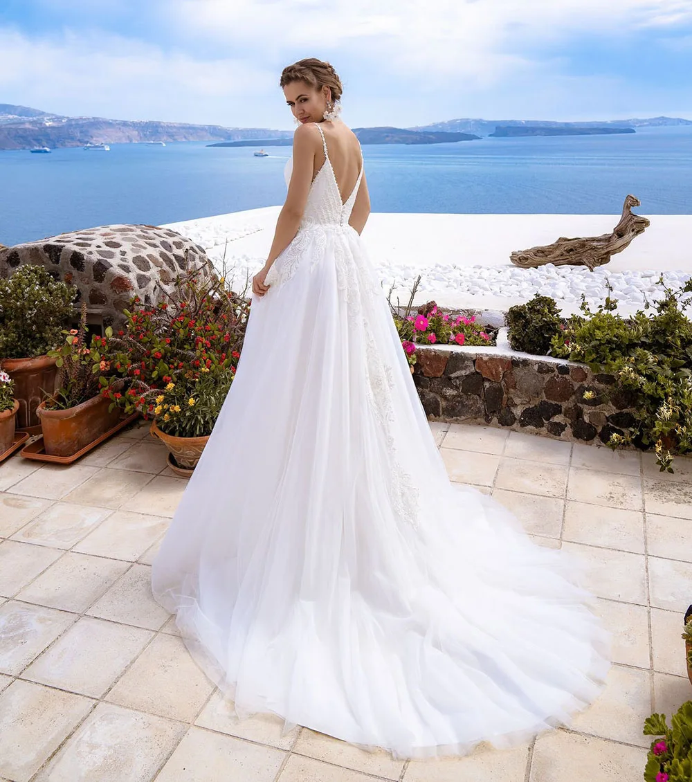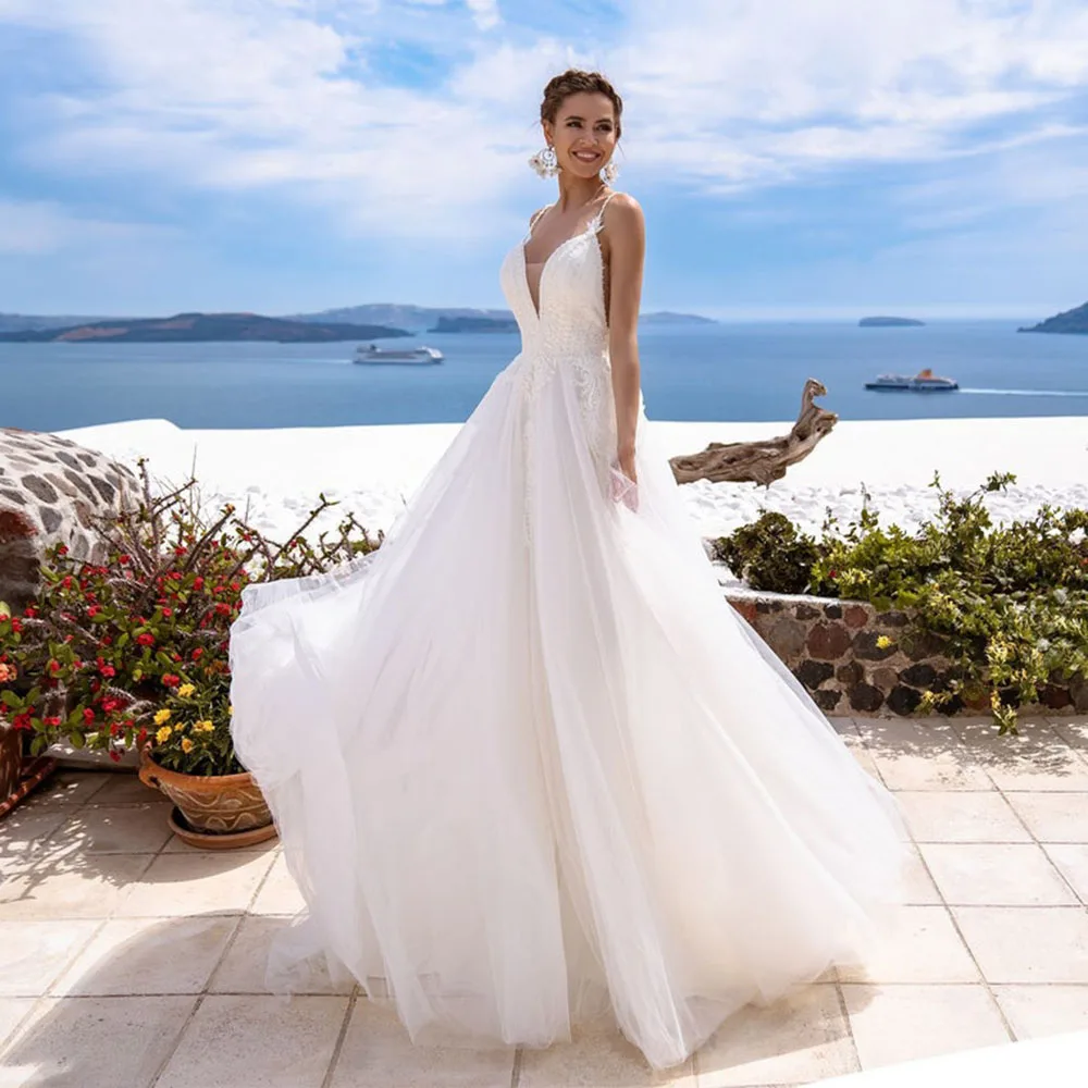 Платье LORIE свадебное с V-образным вырезом, Пляжное фатиновое с от...