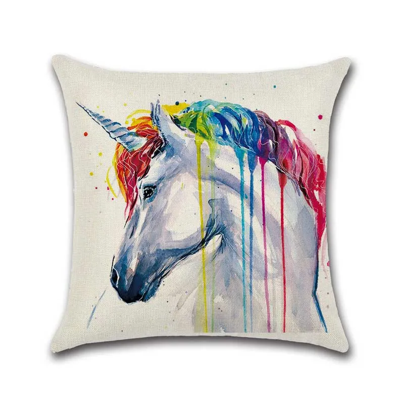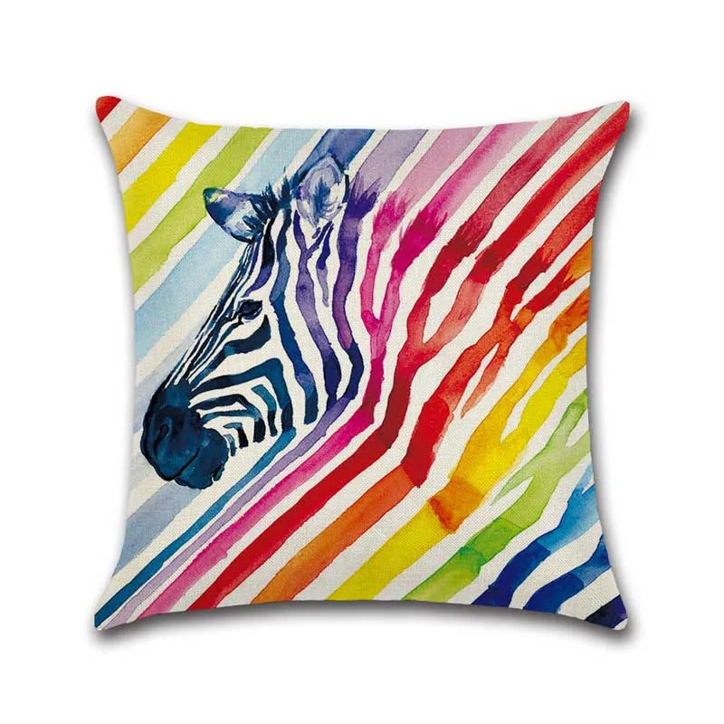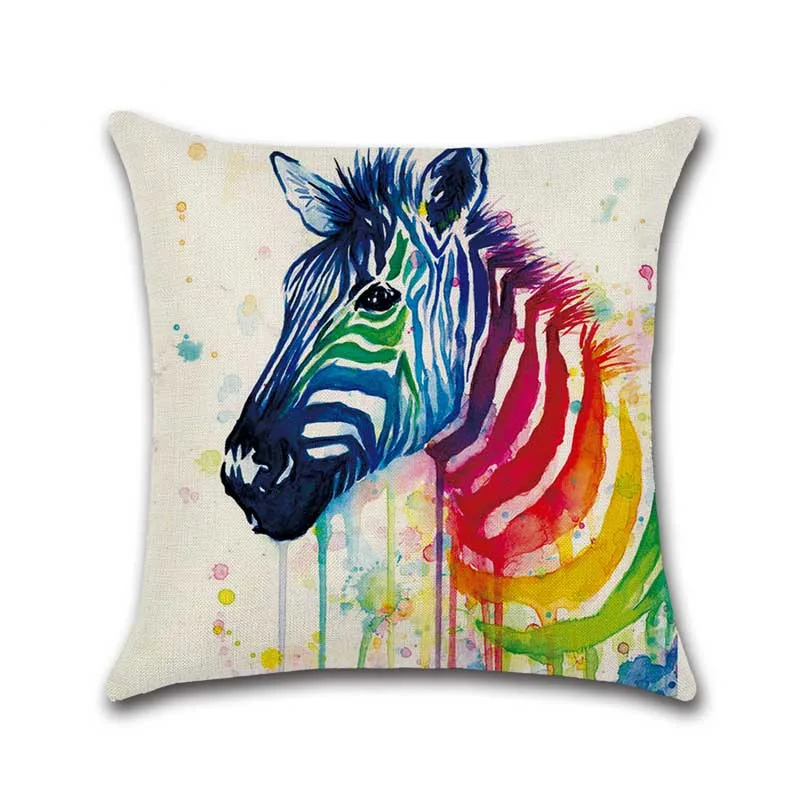 Наволочка с рисунком акварелью, экологически чистый льняной Хлопковый чехол для подушки, чехол для подушки с рисунком лошади, волка, птицы, слона