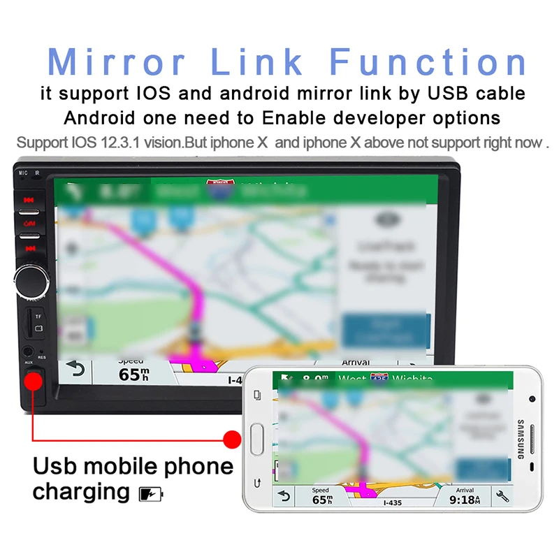 7 дюймов 2DIN автомобиля MP5 плеер Беспроводной сенсорный Экран стерео радио USB AUX поддерживает IOS и Android Системы изображение соединениеОписание:1. Поддержка Android/ iPhone зеркальная ссылка, через оригинальную usb-линию телефона может синхронизироваться с бортовым экраном, Android телефон может осуществлять двустороннее управление, iPhone может осуществлять одностороннее управление2. Встроенная Автомобильная DVR система: она точно захватит состояние дороги после подключения к USB камере. Записи будут сохранены в медиакарте автоматически и могут быть воспроизведены непосредственно на этом устройстве.3. Поддерживает расширенный профиль распределения аудио4. Функция отображения времени выключения5. Цифровое высококачественное fm-стерео радио6. Предустановка 18 станций (частота: 87,5-108 МГц)7. Поддержка USB / SD / MMC кард-ридер8. Поддержка аудио: MP3 / WMA / APE / FLAC / WAV и т. д.9. Поддержка функции папки10. Поддержка точек останова и ID3 Play11. Поддержка дистанционного управления12. Поворотный регулятор громкости13. MP3 рандомизированный, 10 трек вверх/вниз воспроизведение14. Электронный регулятор громкости ВЧ, басы, баланс и фейдер15. Выбор различных эквалайзеров: Джаз, Рок, Поп, Классика и т. Д.16. Бесшумное и громкое управление17. L / R RCA аудиовыход гнезда18. 4-канальный выход высокой мощности (4 громкоговорителя)19. Режимы поддержки: BT / APE / WAV / WMA / MP3 / FM20. Аккумулятор дистанционного управления (не входит в комплект): CR2025 3V21. Источник питания: 12 В машина (11 - 16 В)22. Язык: английский/испанский/французский/португальский/немецкий/итальянский/русский/Турецкий/арабский/Иврит/Польский/японский/китайский23. Он поддерживает пульт дистанционного управления, а также пульт дистанционного управления рулевого колеса, что бы вы ни выбрали, это более удобно использовать.Важное Примечание перед установкой:1. Желтая линия (для провода памяти), подключенная к аккумулятору с постоянным током, устройство будет иметь функцию памяти.2. Красная линия выберите ключ к линии ACC, эта линия также является положительной, Управляйте переключателем питания. Черный провод подключен к отрицательному источнику питания.3. Синяя линия, соединенная, поднимает антенну или сабвуфер REM control line, если она не подключена, обернута прорезиненной тканью.4. Остальные восемь проводов (серый, белый, зеленый, фиолетовый)-это линия динамиков, группа цветов, соответствующая паре линий динамиков (положительный и отрицательный).5. Пожалуйста, обратите внимание, чтобы проверить, является ли оригинальный кабель для автомобильного динамика, если свяжитесь с железом (оригинальный провод динамика автомобиля Сварка к металлу, или динамик только линия оттепнуть, называется Контактное железо). Контактное железо вызовет нашу мощную машину без звука, пожалуйста, проверьте его с помощью мультиметра перед установкой, если свяжитесь с железом, отключите, а затем установите.Посылка:1 X Автомобильный сенсорный экран монитор с MP5 плеером1 х Акустический кабель1 пульт дистанционного управления1 х Кабель питания1 x Руководство пользователя