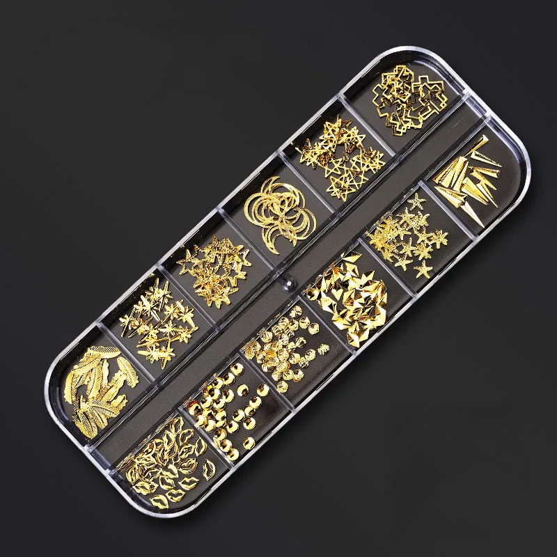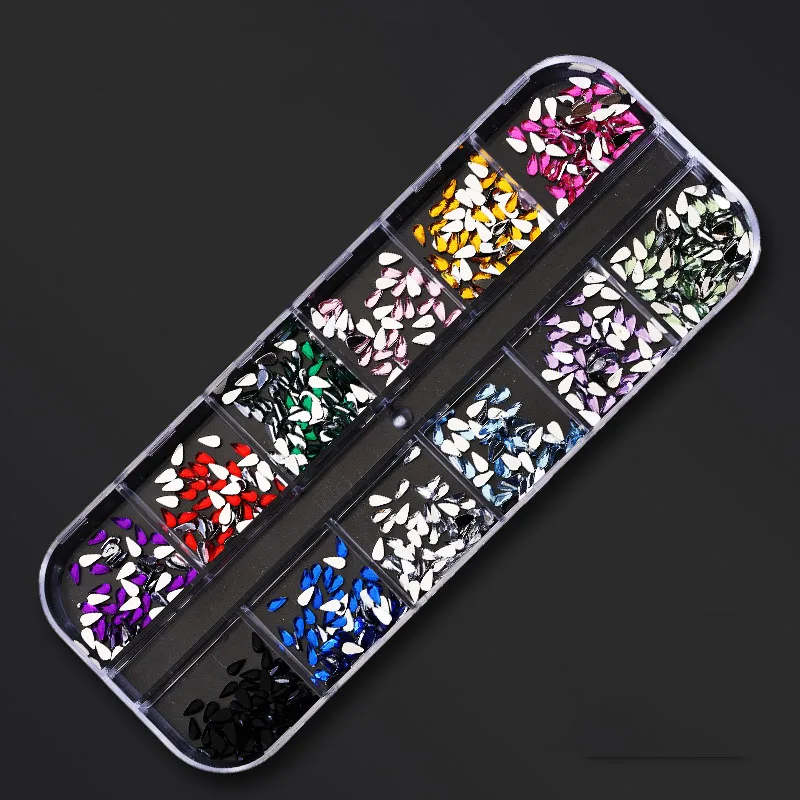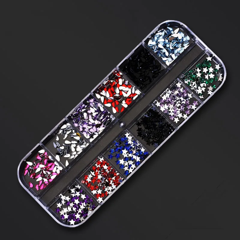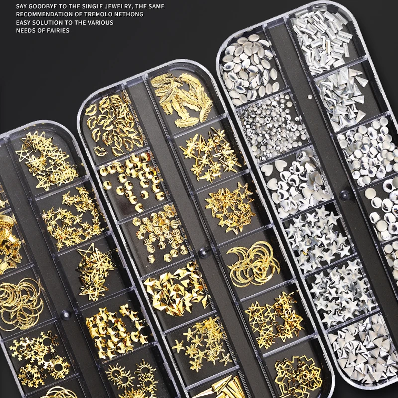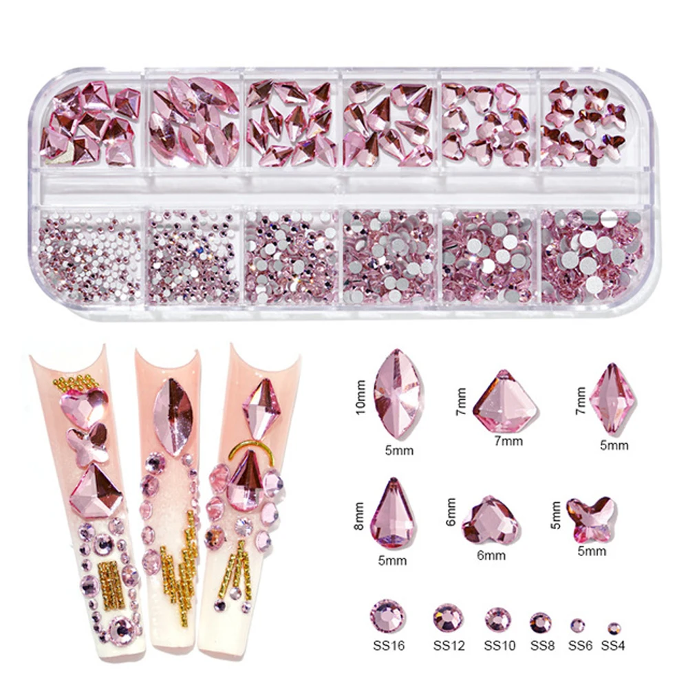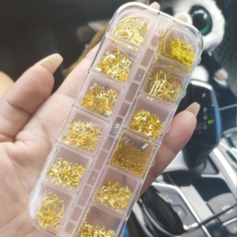 12 ячеек ABкрасочные ногти Стразы смешанного размера металлические заклепки Роскошные ювелирные изделия алмазные драгоценные камни жемчуг 3D блестящие украшения для ногтей P1
