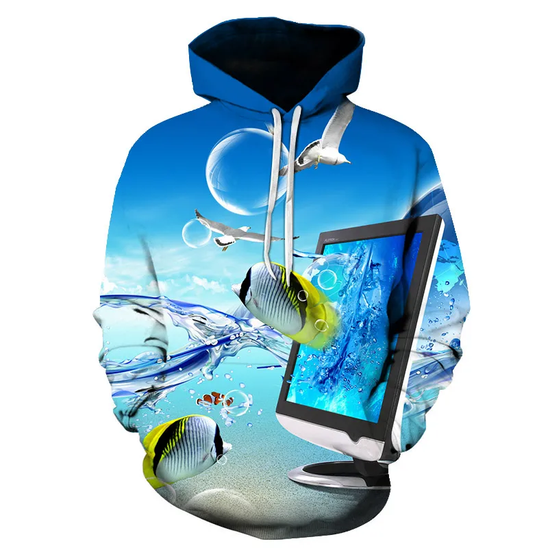 Новинка 3D забавные толстовки с тропическими рыбками для рыбаков мужские женские мужские толстовки с длинным рукавом с капюшоном в стиле хип-хоп Уличная одежда с капюшоном