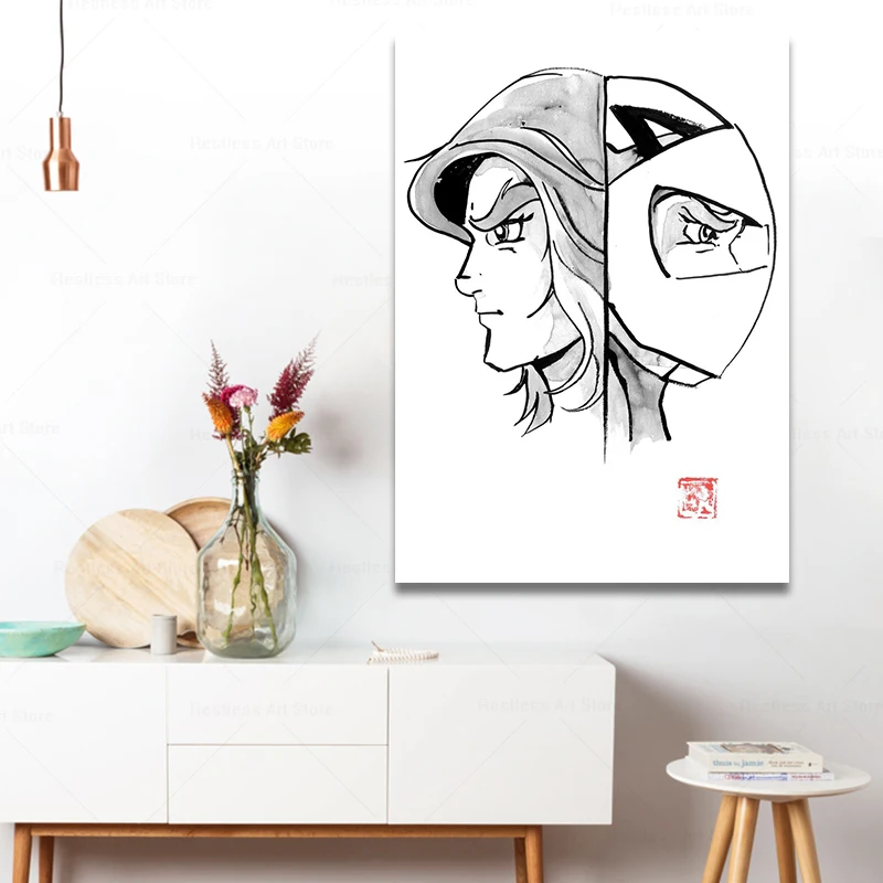 Черная и белая винтажная картина из аниме робот Манга грендар, живопись на холсте, настенные картины, рамка для домашнего декора