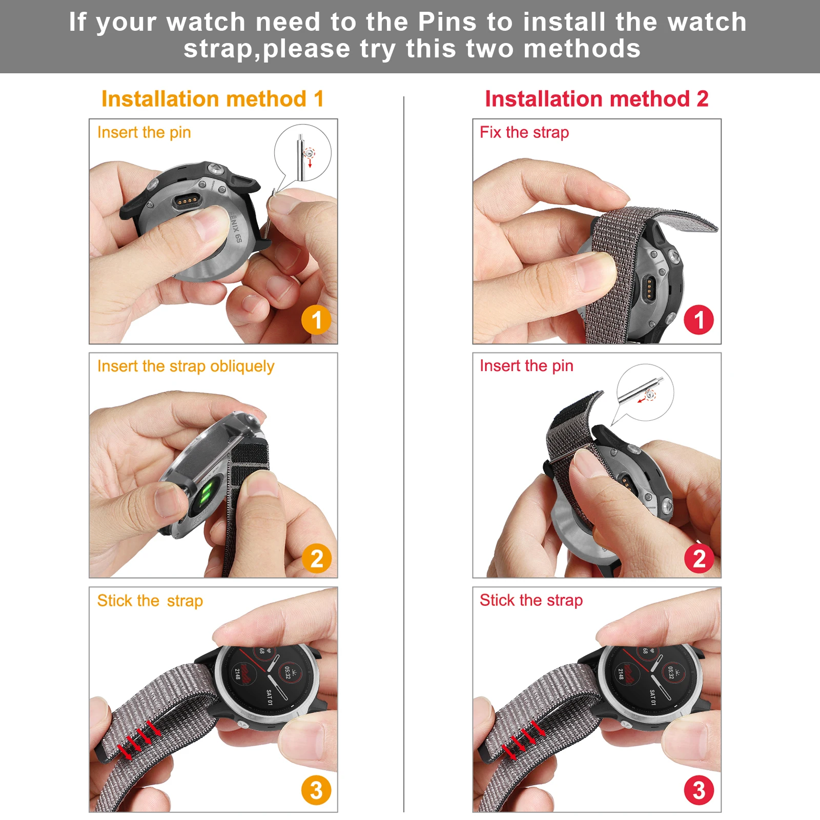 Используйте ремешок так же просто, удалите свой текущий браслет быстрого прилегания, вставьте его в наконечники часов вашего Garmin Fenix 6/5. Наконец, прикрепите к запястью.