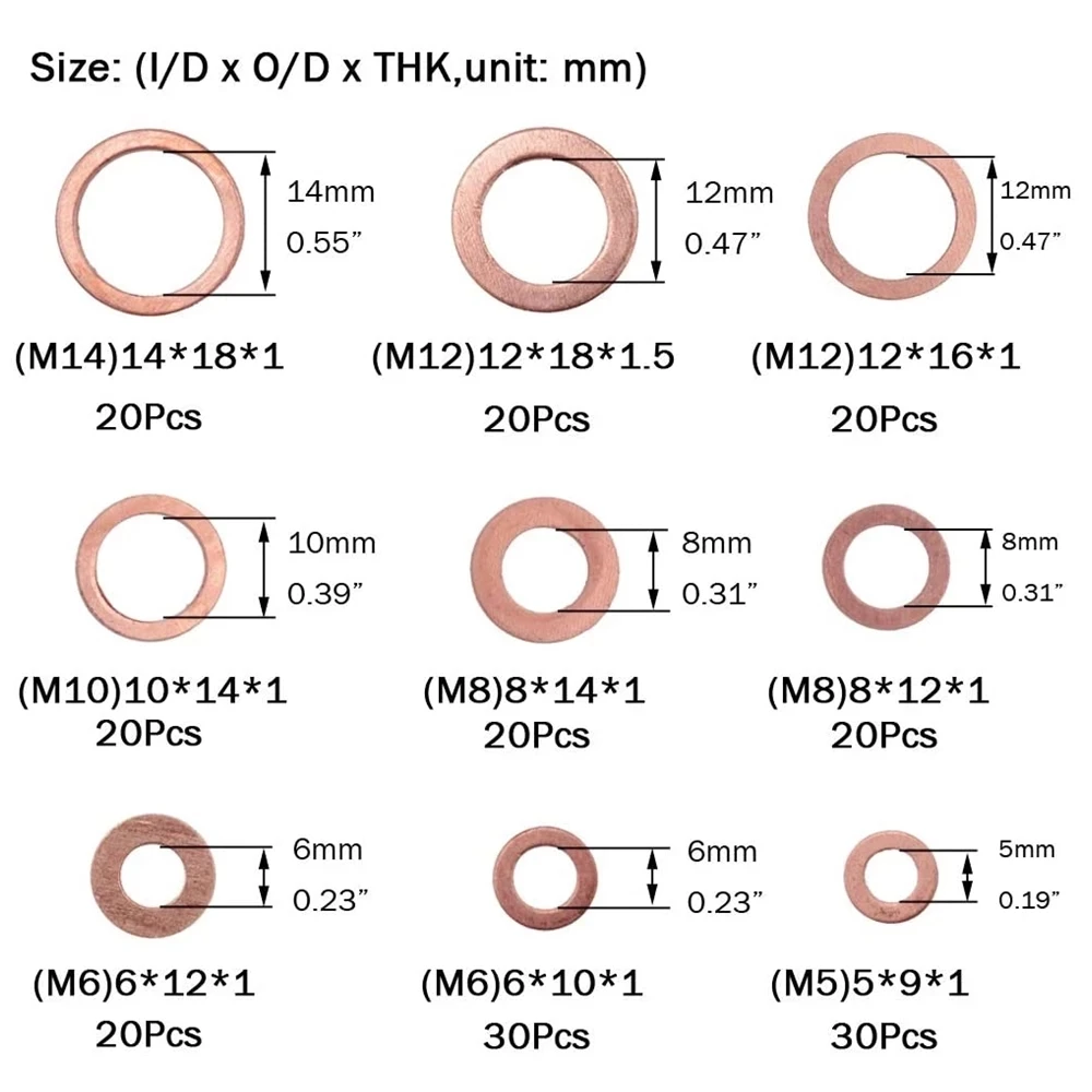 100 шт. набор медных шайб, прокладки, гайки и болты, набор уплотнительных колец с коробкой M4M5M6M8M10M12M14 для пробки отстойника