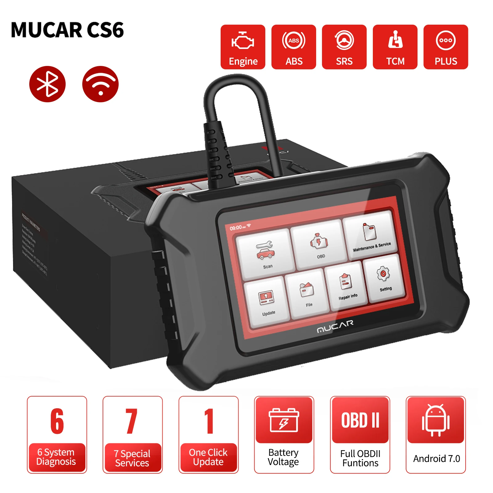 MUCAR CS6 устройство считывания кода автомобиля для 7 услуг сброса (масло + EPB + SAS + TBA + TPMS + ABS + DPF) срок службы