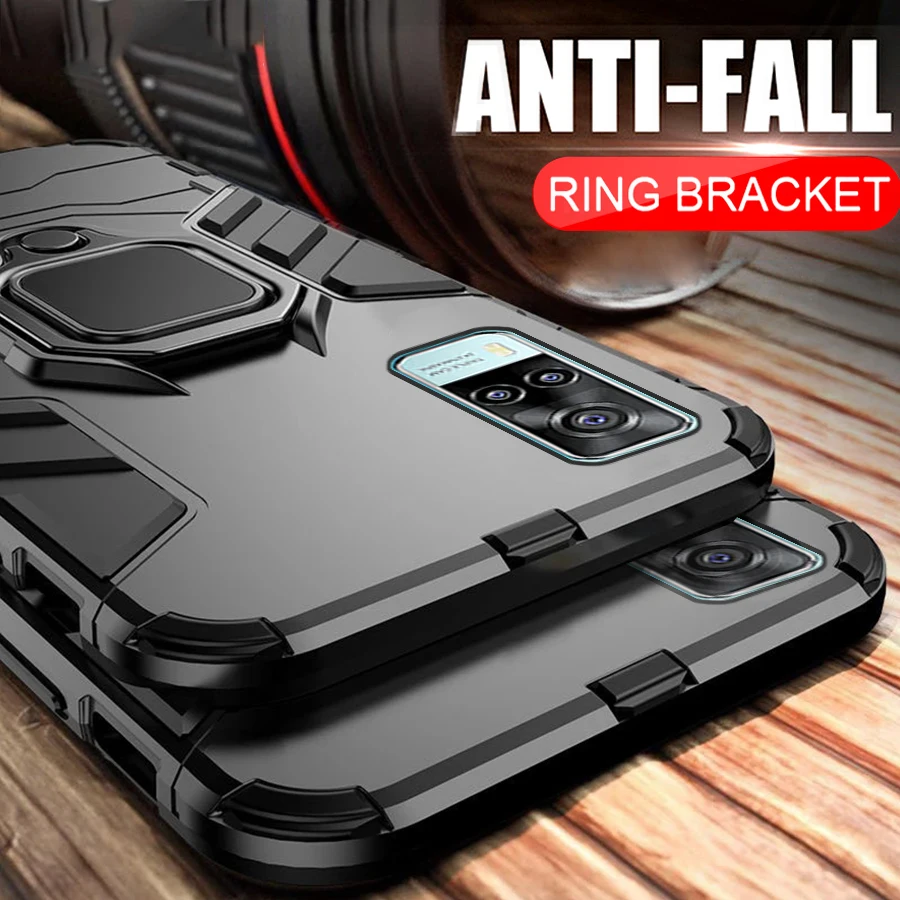 Сверхпрочный противоударный армированный ЧЕХОЛ ДЛЯ Vivo Y53s Y 53 s 53 s 2021, автомобильный магнитный держатель, защитный чехол с кольцом на VivoY53s V2111A 6,58''