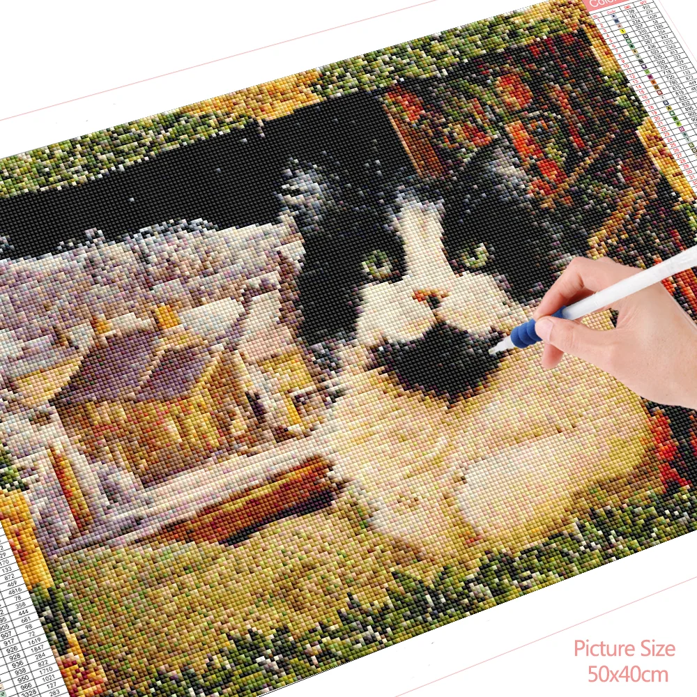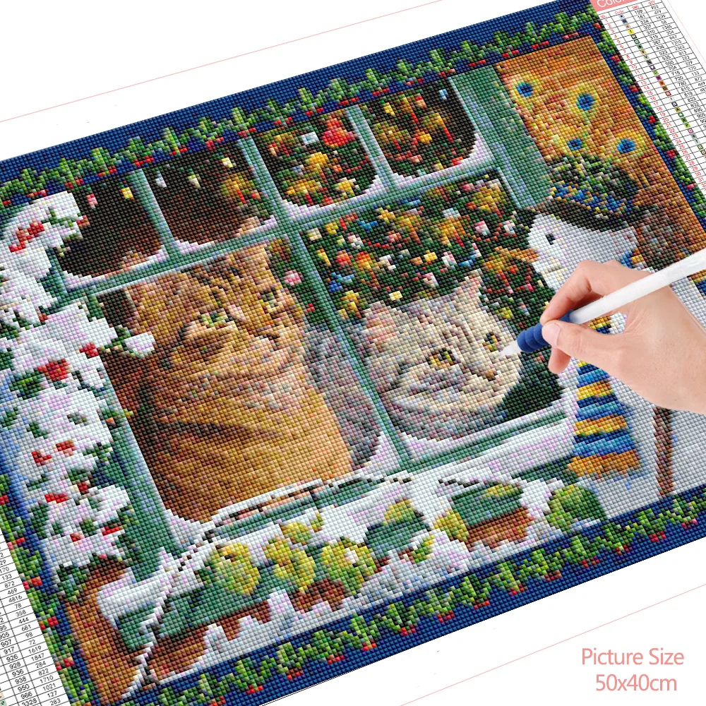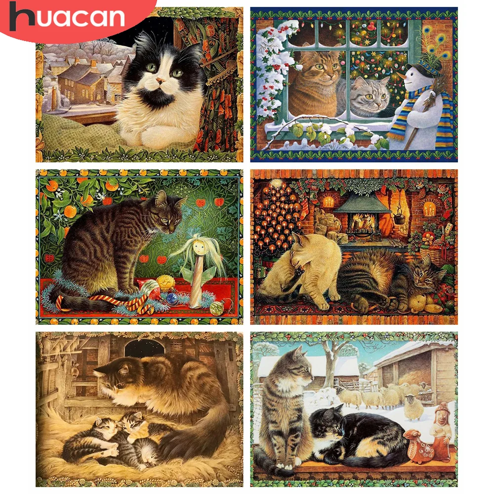 Набор для алмазной живописи HUACAN, Алмазная мозаика 5D с изображением кота и окон, Набор для вышивки крестом с животными, вышивка, украшение для стен