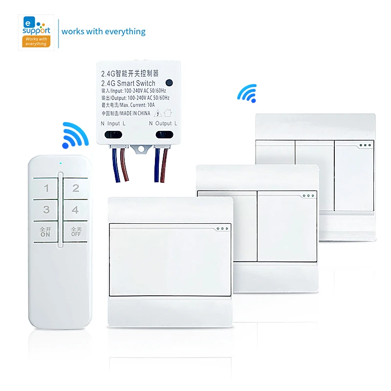 2. При использовании с пультом дистанционного управления 2,4G уникальный 8-клавишный дизайн может различать оборудование в каждой комнате дома по комнате и управлять всем оборудованием в разных комнатах с помощью разных клавиш. Он также может реализовывать Одно нажатие, когда выходите, DIY smart life, с этого момента. (За исключением 7 и 8 кнопок, которые фиксируются на полное включение и выключение, другие кнопки можно определить как переключатели, которые управляют несколькими устройствами в соответствии с их фактическими потребностями.)