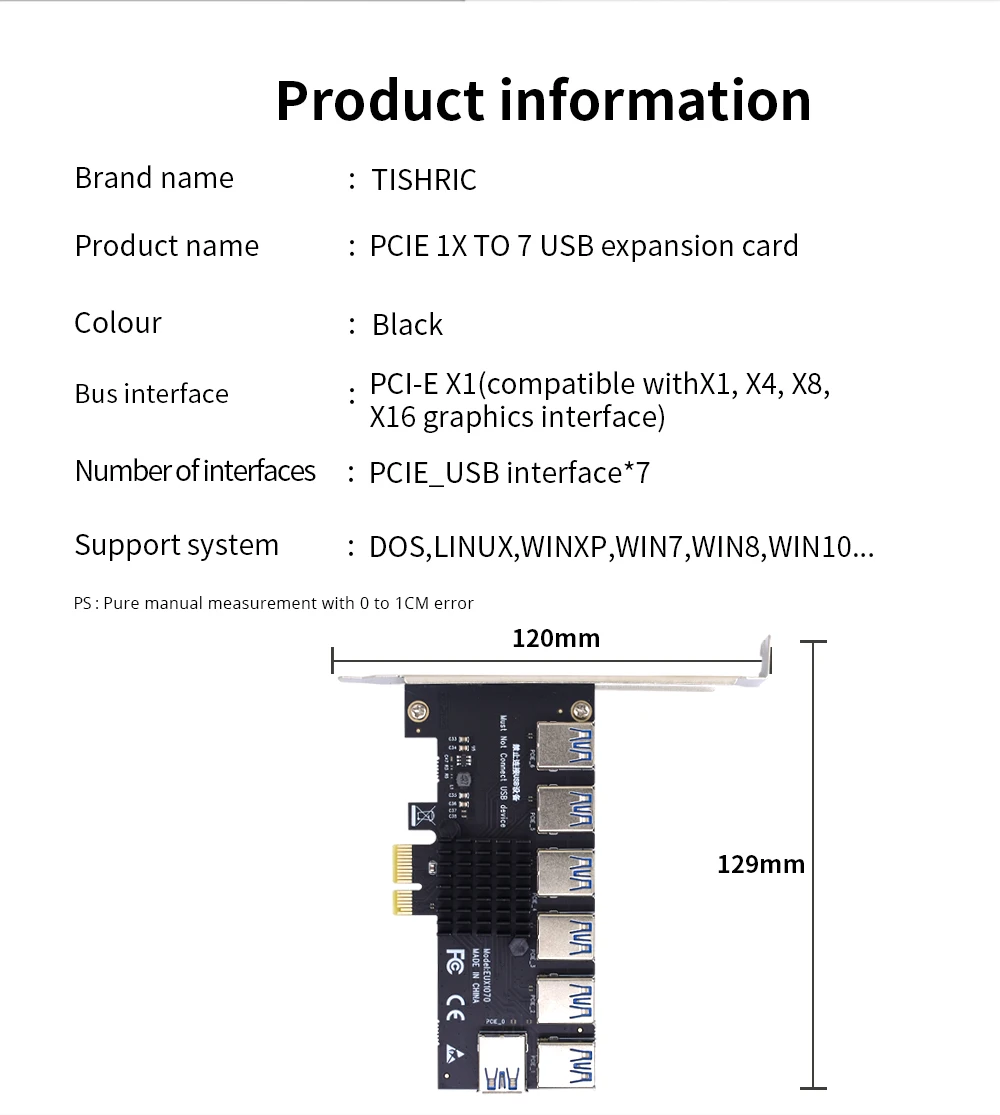 Райзер TISHRIC PCI Express с 1 до 6 портами USB 3,0 PCI-E Hub, Райз...