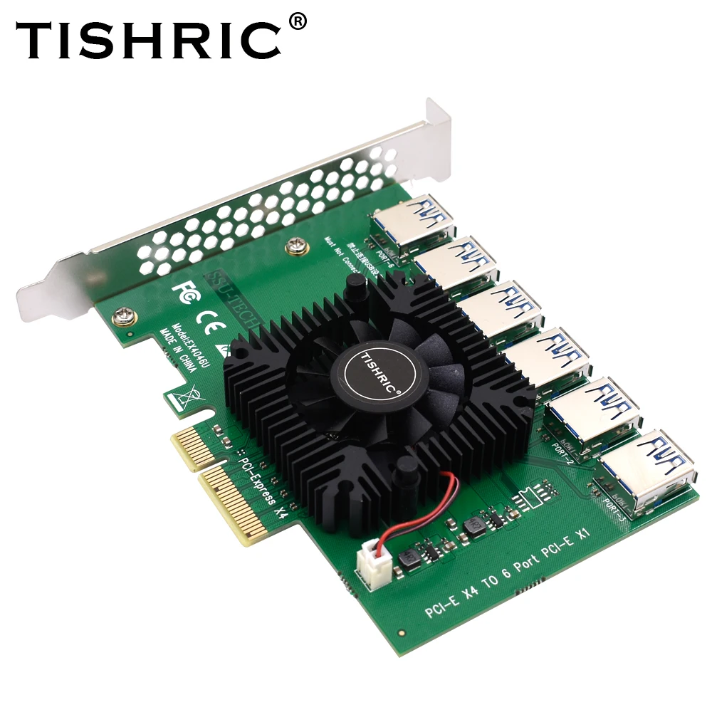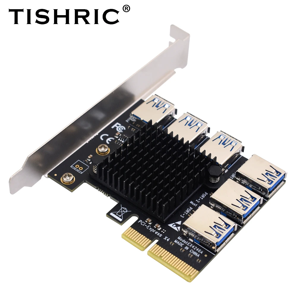 TISHRIC PCI Express множитель, от 1 до 6 портов USB 3,0 PCI-E от 1 до 4567 концентратор, переходная карта PCIE 4X 1x 16x, Райзер для майнинга