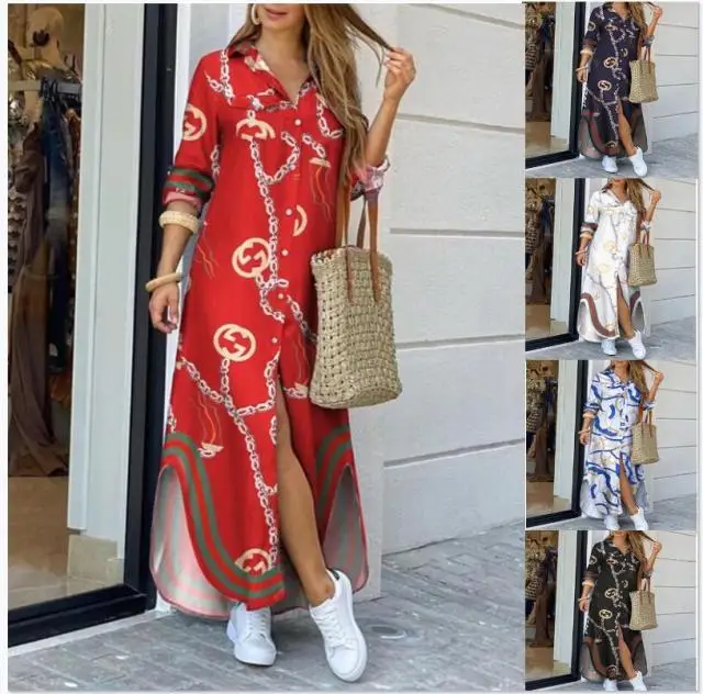 Платья для женщин весна-лето 2021 модная пикантная рубашка Длинные повседневные женские элегантные платья с принтом и средней талией
