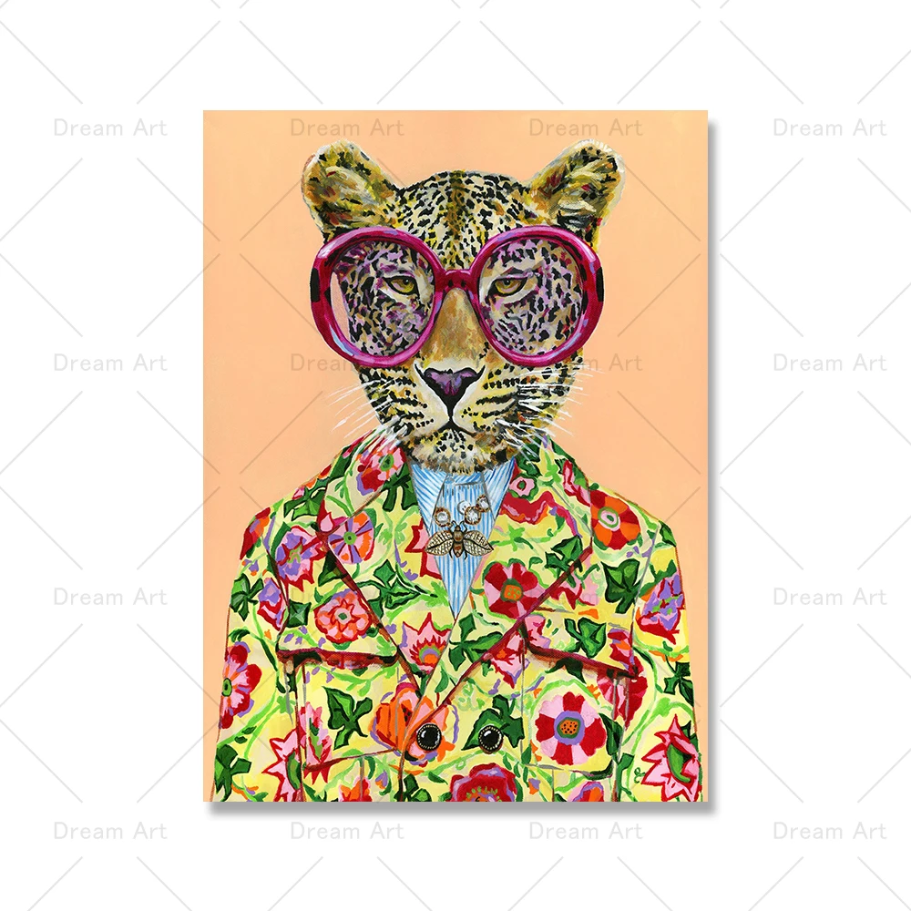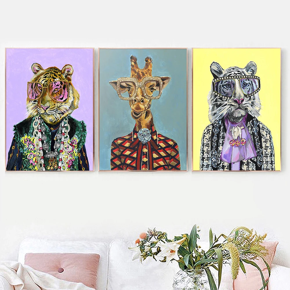 Модные животные в костюме художественные картины на холсте винтажные постеры и принты лев тигр Жираф на стене художественная картина домашний декор
